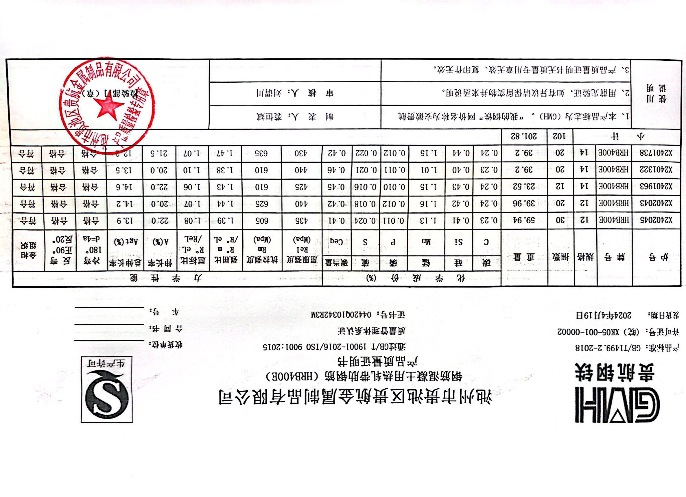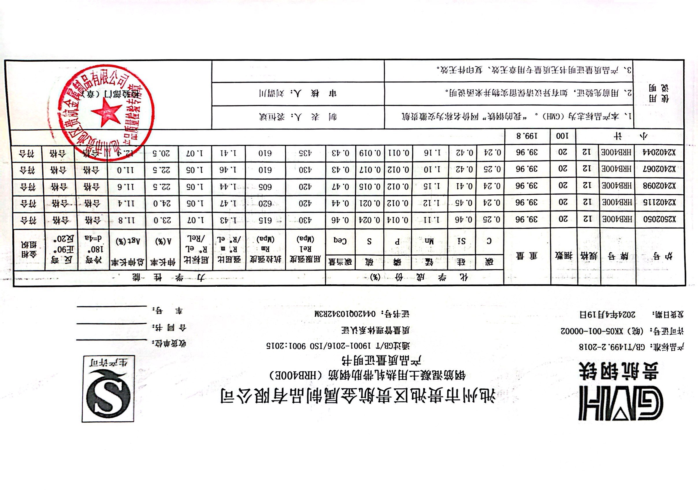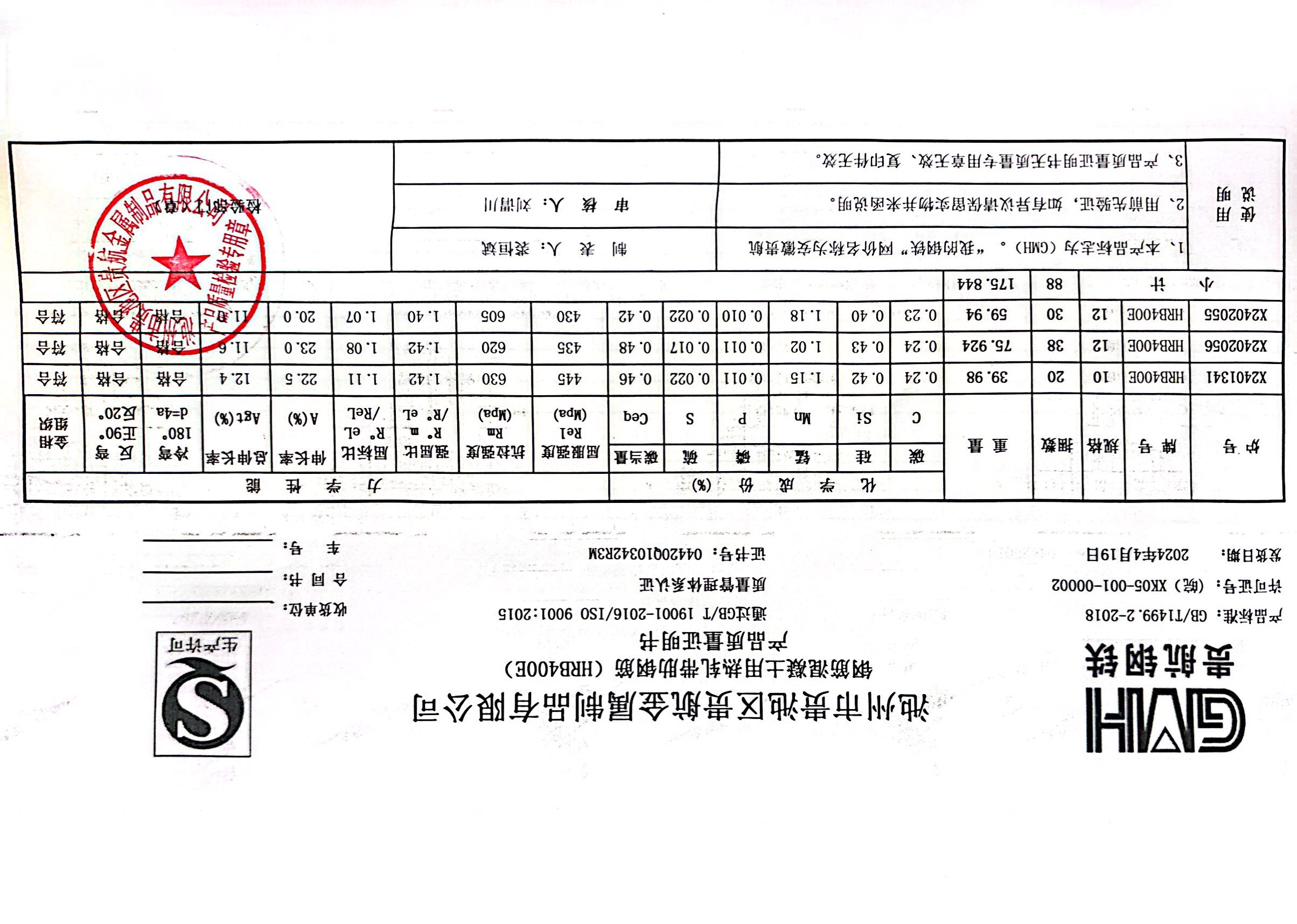 安徽省贵航特钢有限公司GH/JL-JZ-45提货单位:上海登钢商贸有限公司3、如发现产品质重问题,请在验收后5天内向我公司质里科提出异议并保留实物,等我公司审验后处理,擅自使用我公司不负任何责任。