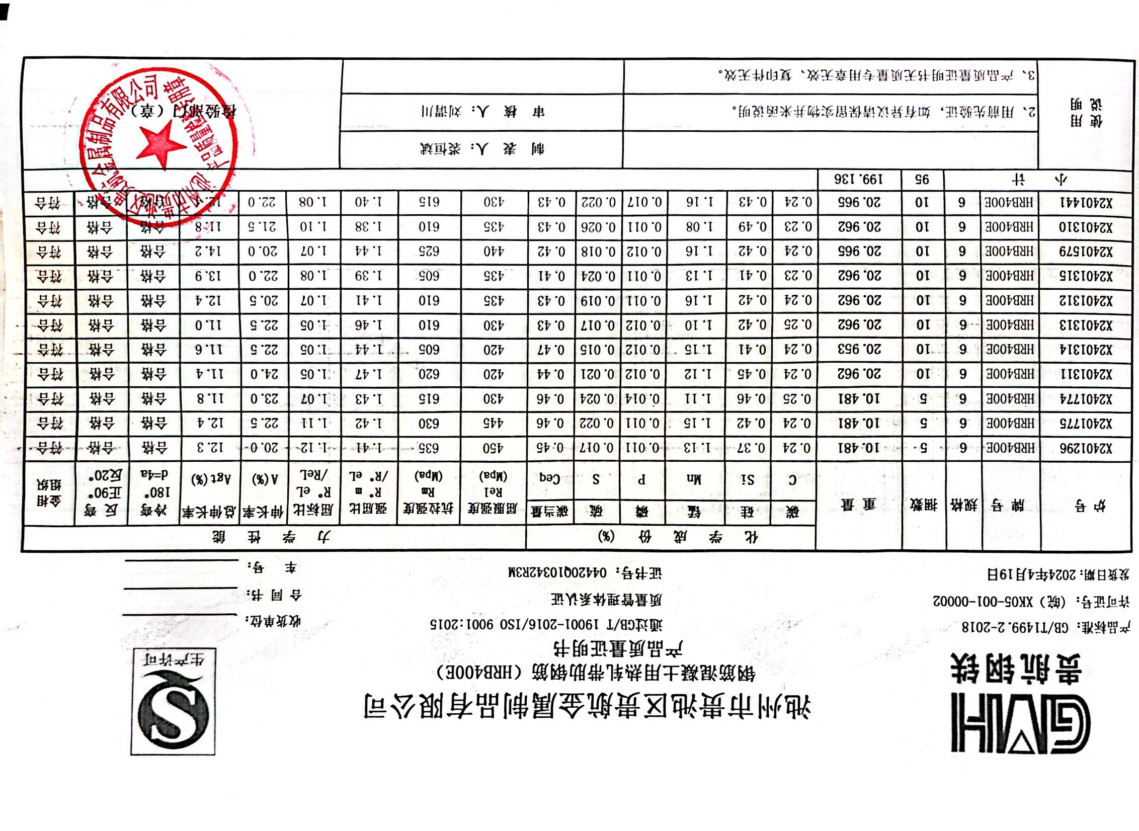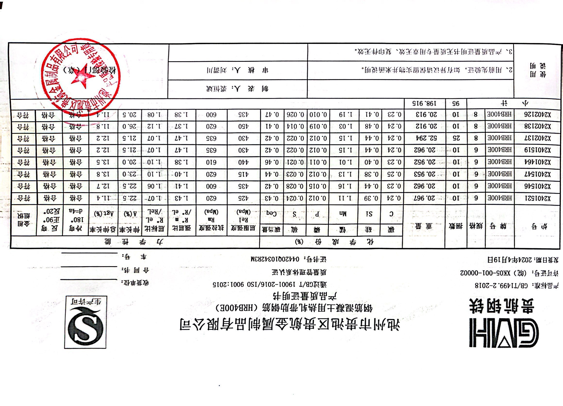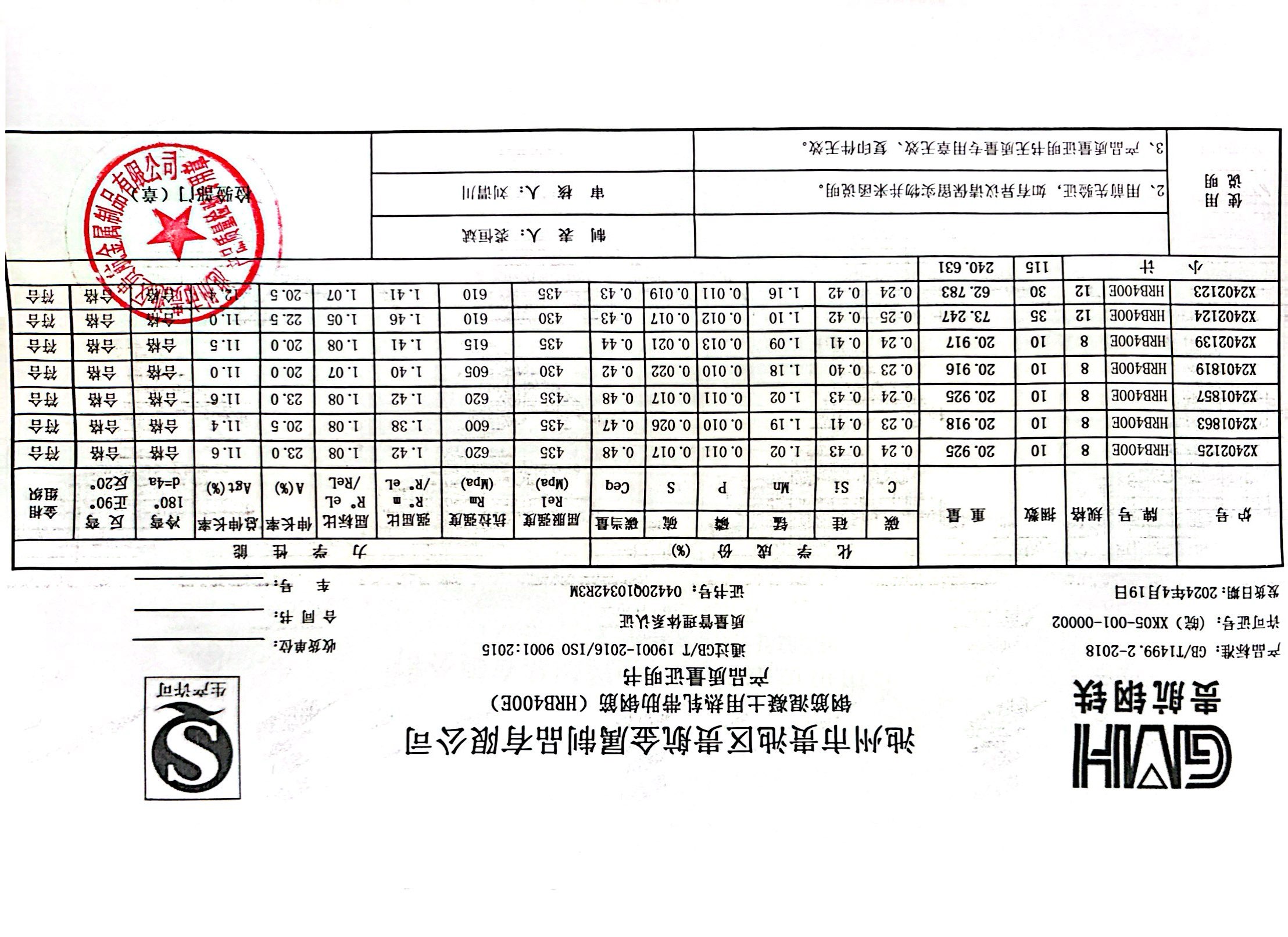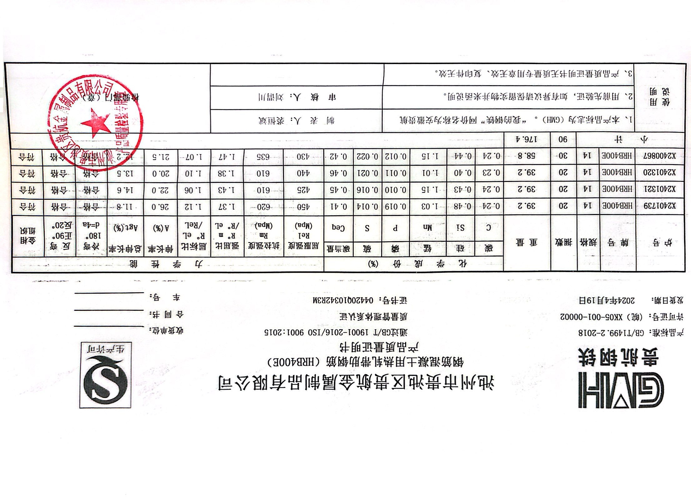 安徽省贵航特钢有限公司GH/JL-JZ-45提货单位:上海登钢商贸有限公司3、如发现产品质重问题,请在验收后5天内向我公司质里科提出异议并保留实物,等我公司审验后处理,擅自使用我公司不负任何责任。
