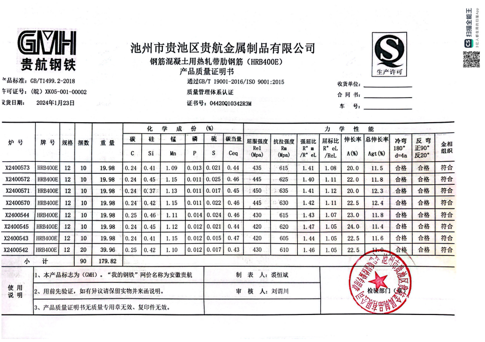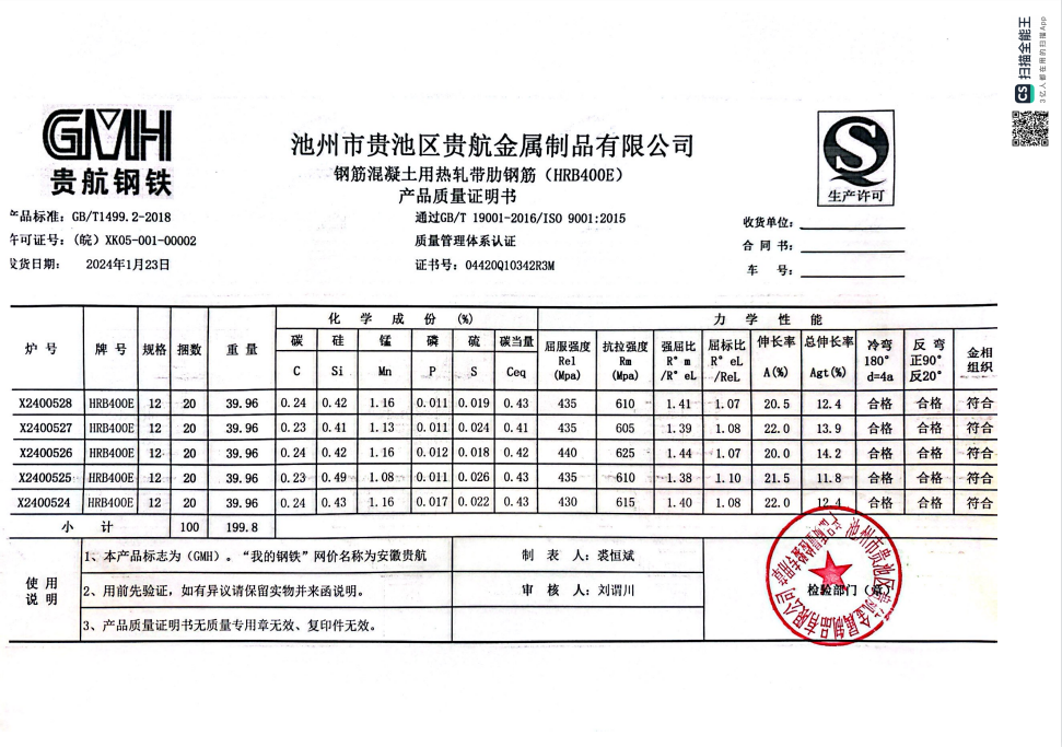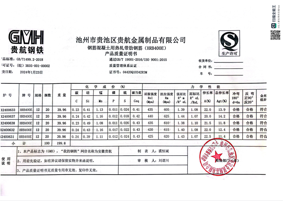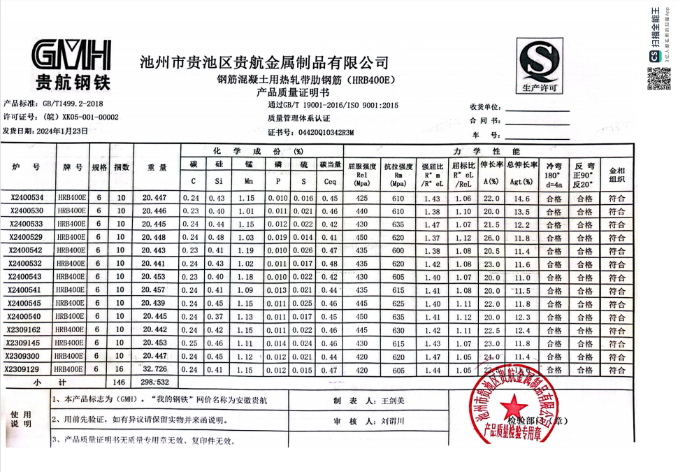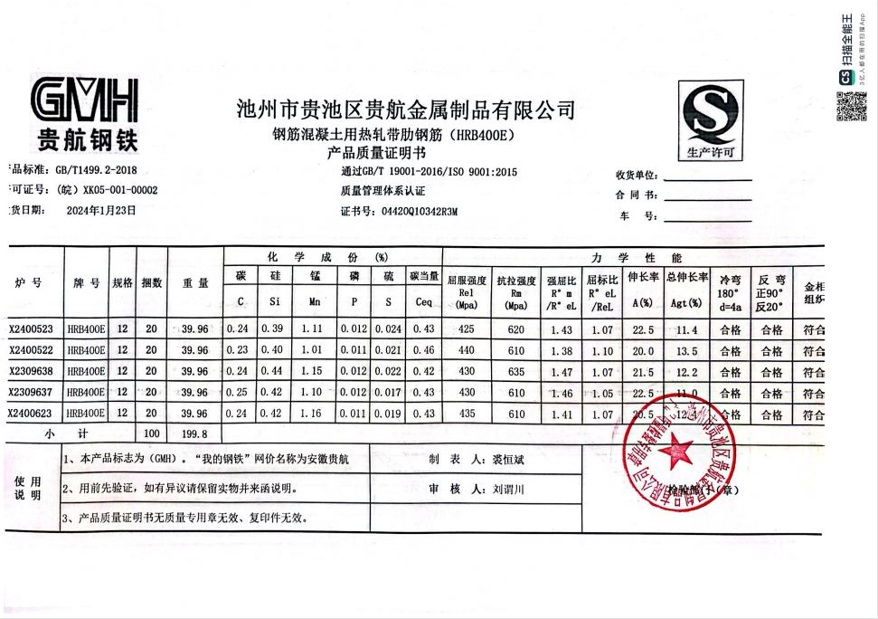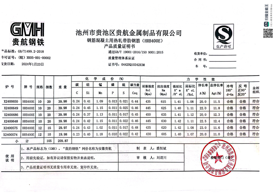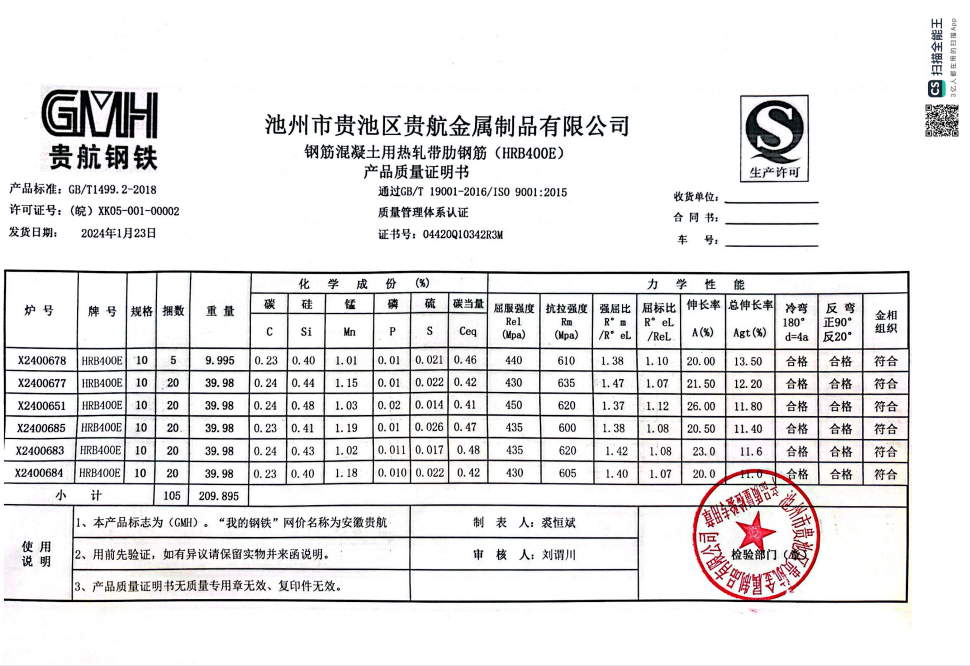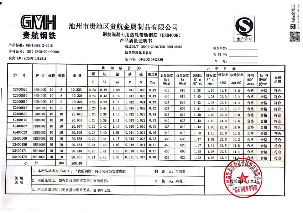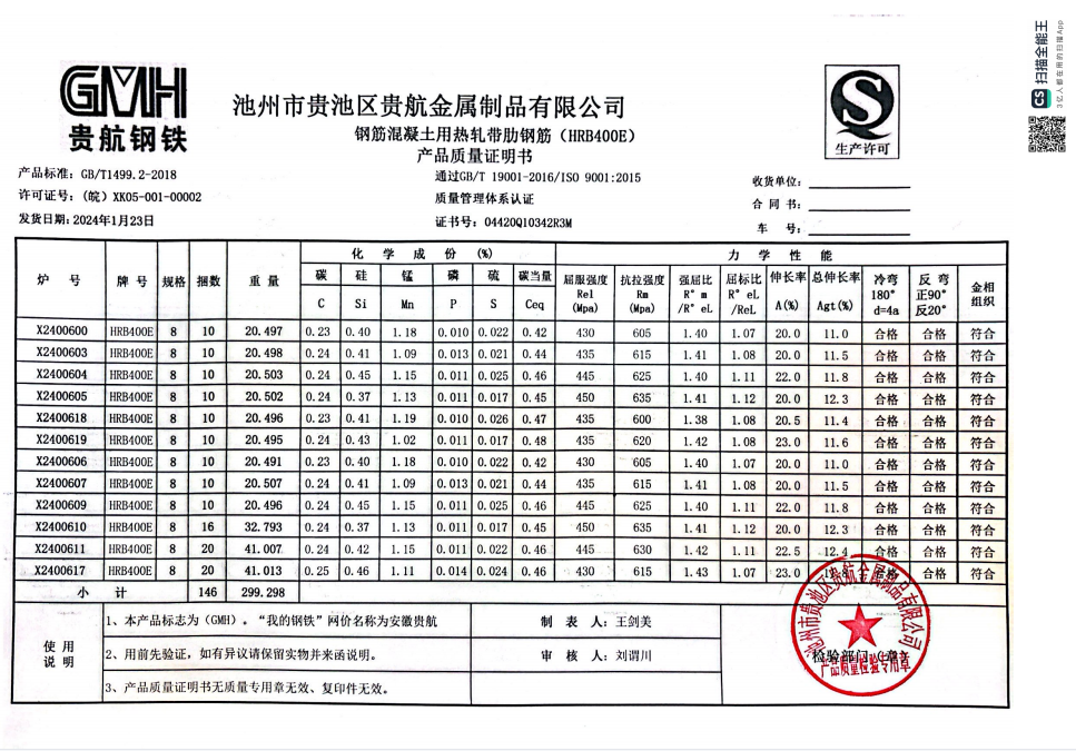 安徽省贵航特钢有限公司GH/JL-JZ-45提货单位:上海咏鑫实业有限公司3、如发现产品质问题,请在验收后5天内向我公司质重科提出异议并保留实物,航省贵航特钢有限公司等我公司审验后处理,擅自使用我公司不负任何责任。