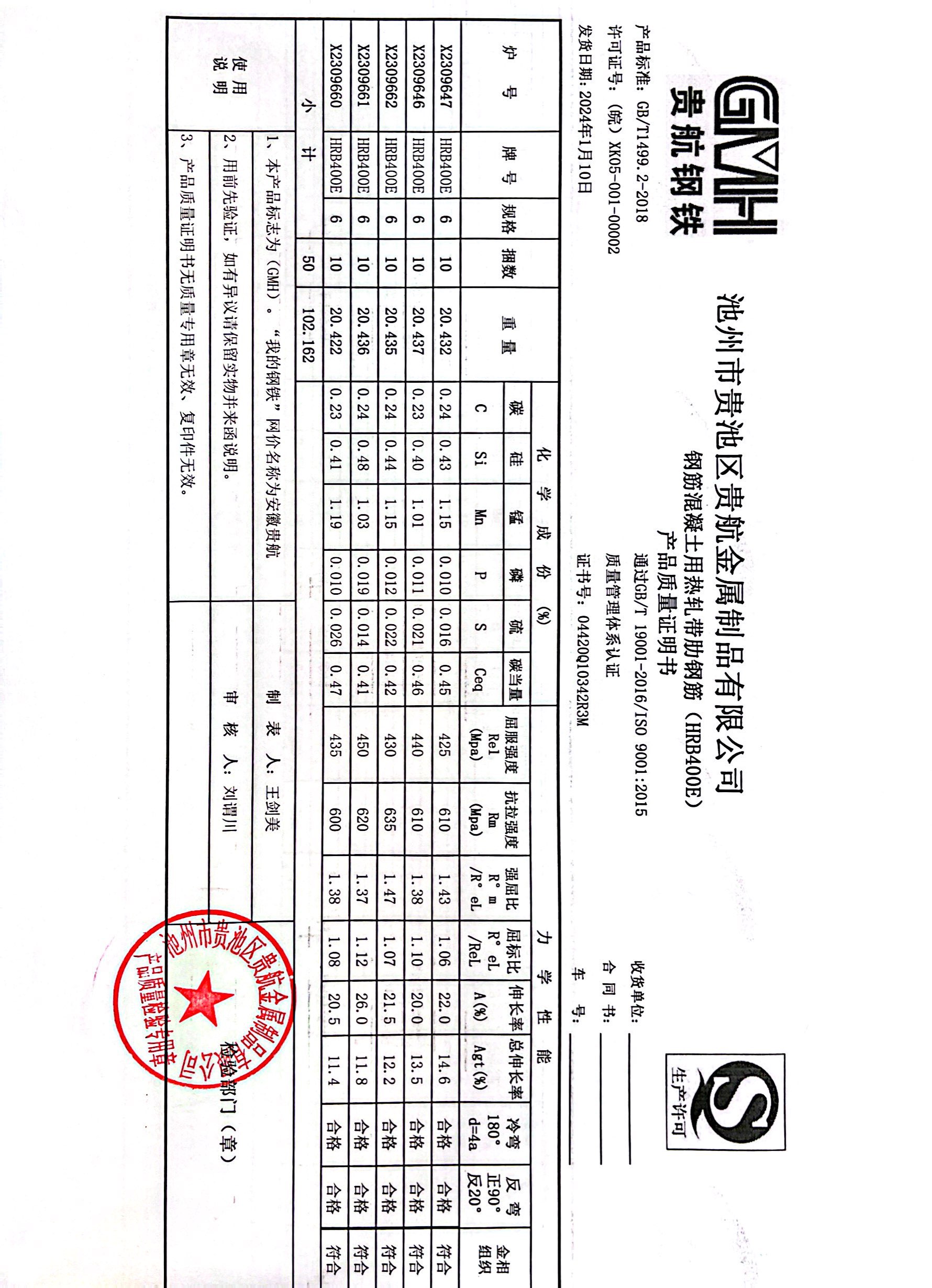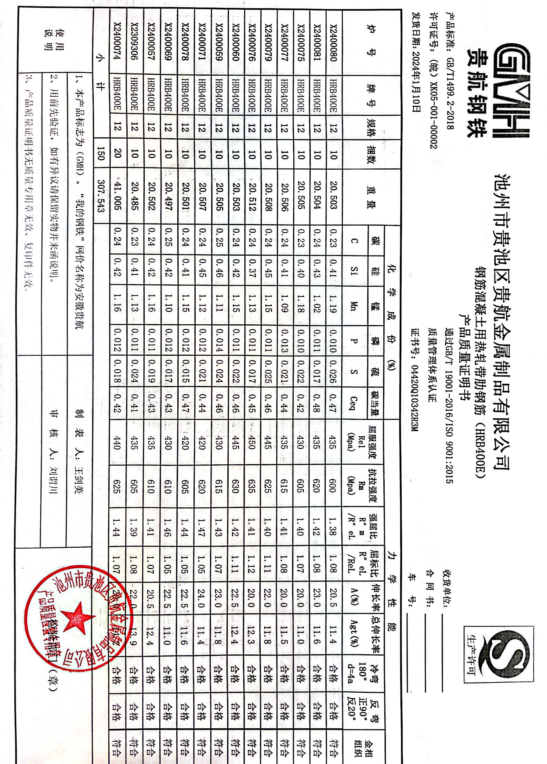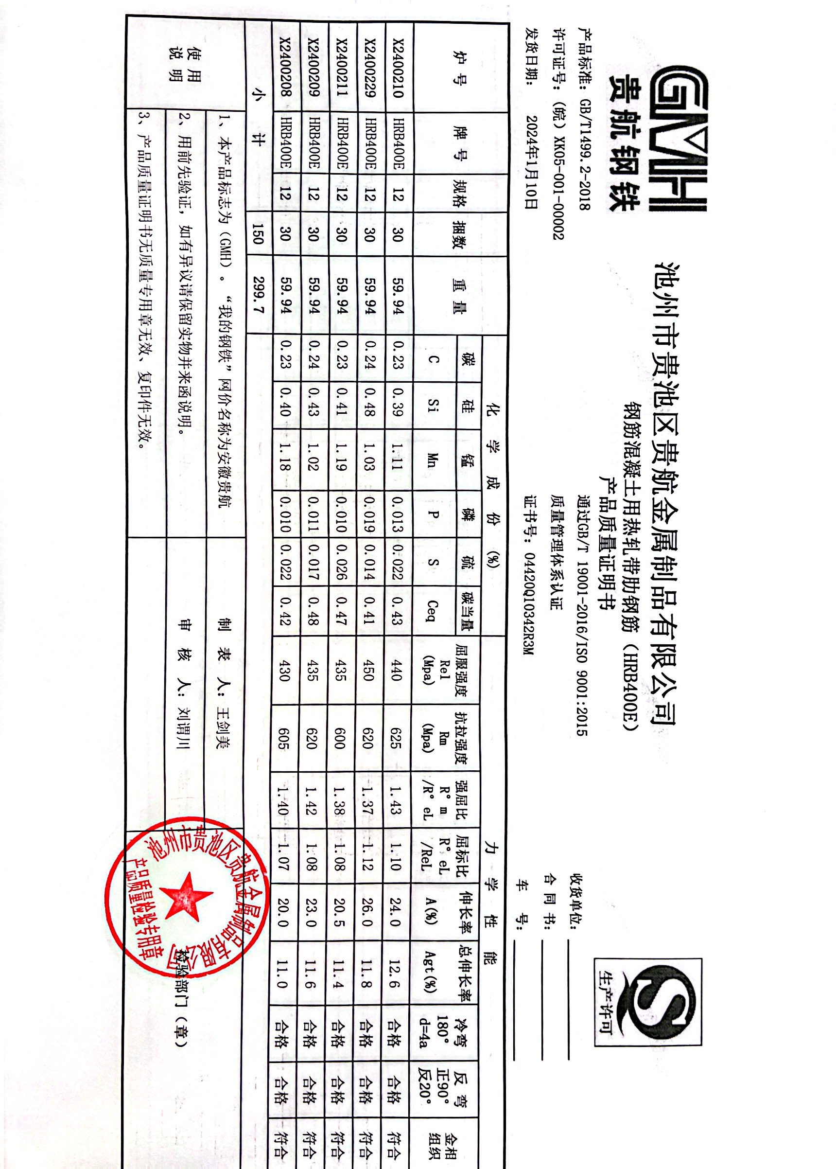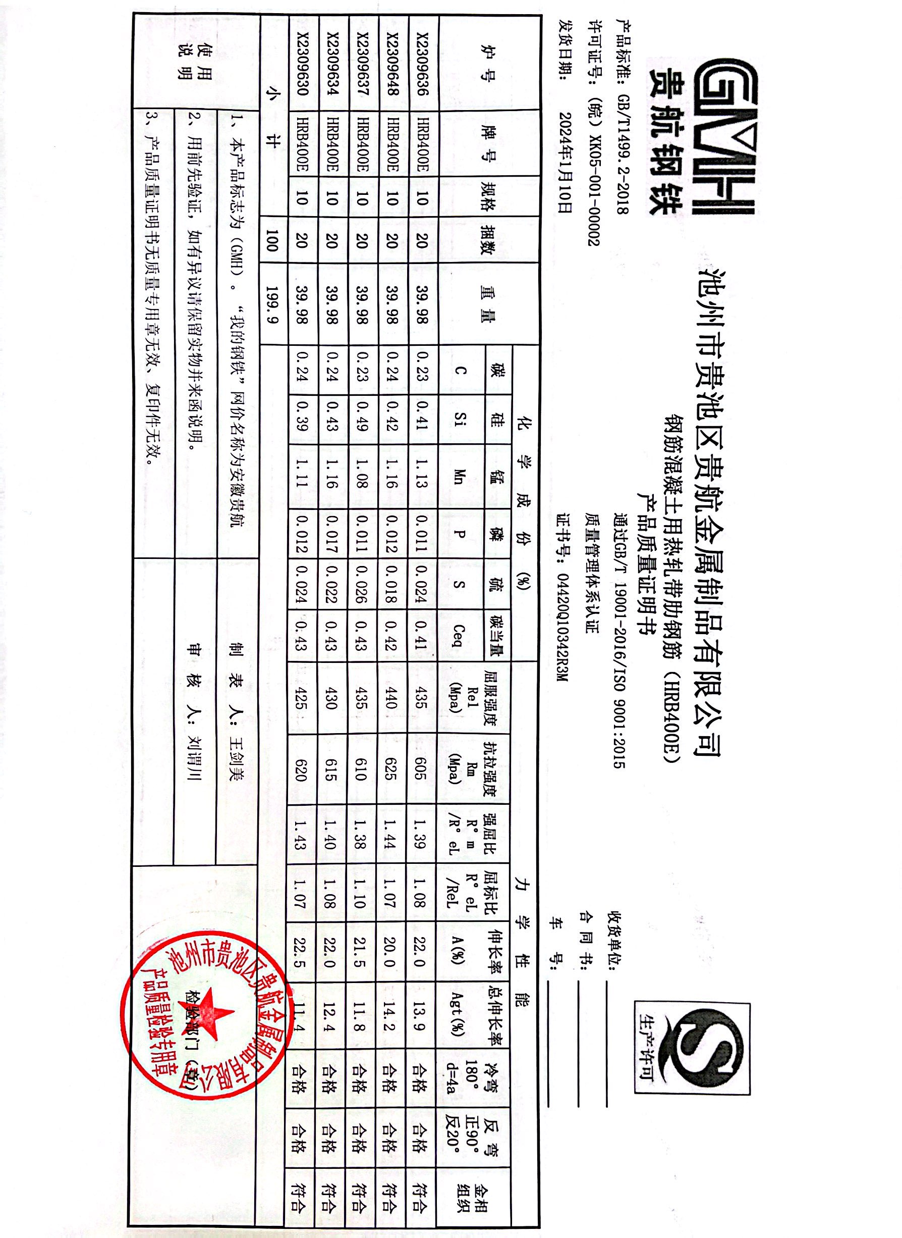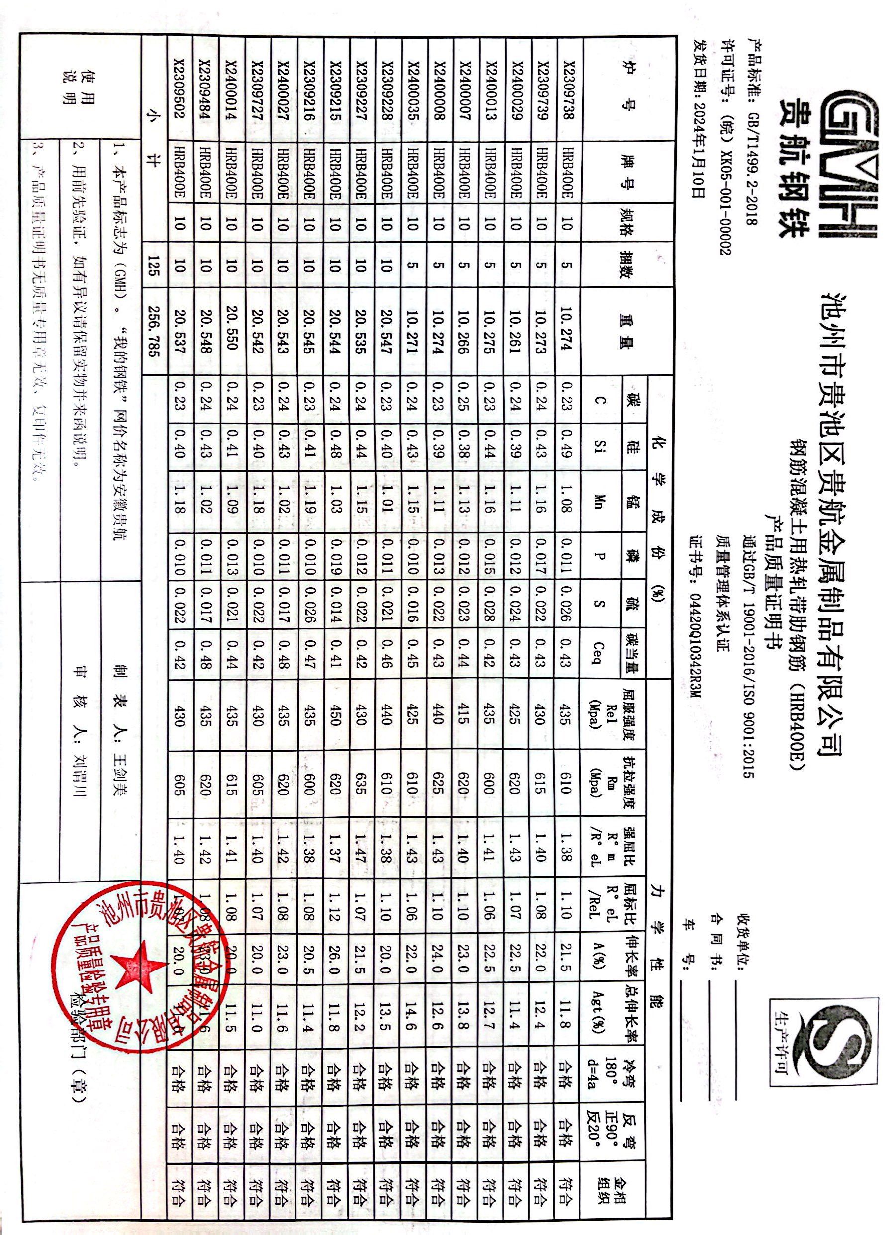 安徽省贵航特钢有限公司GH/JL-JZ-45提货单位:上海咏鑫实业有限公司3、如发现产品质问题,请在验收后5天内向我公司质科提出异议并保留实物,安徽省贵航特钢有限公司等我公司审验后处理,擅自使用我公司不负任何责任。