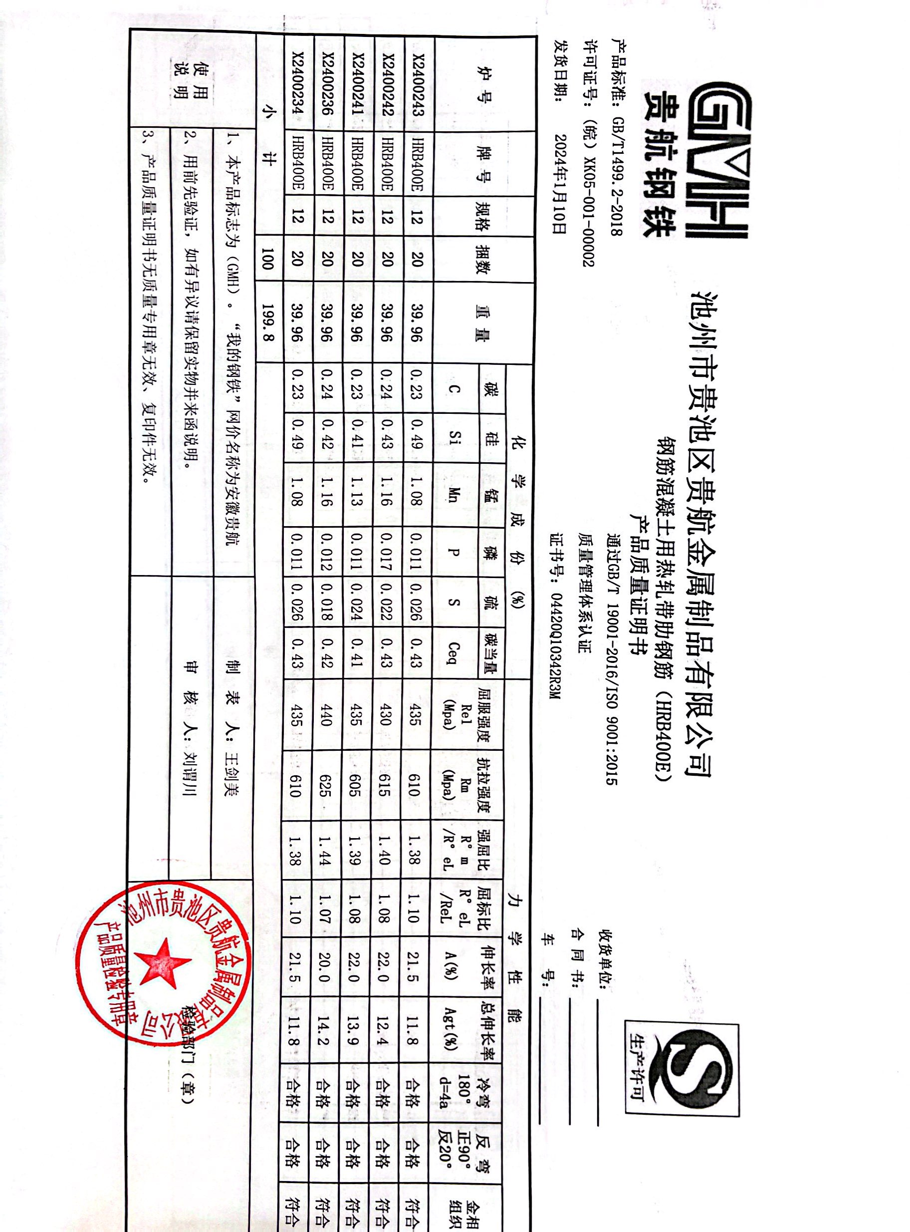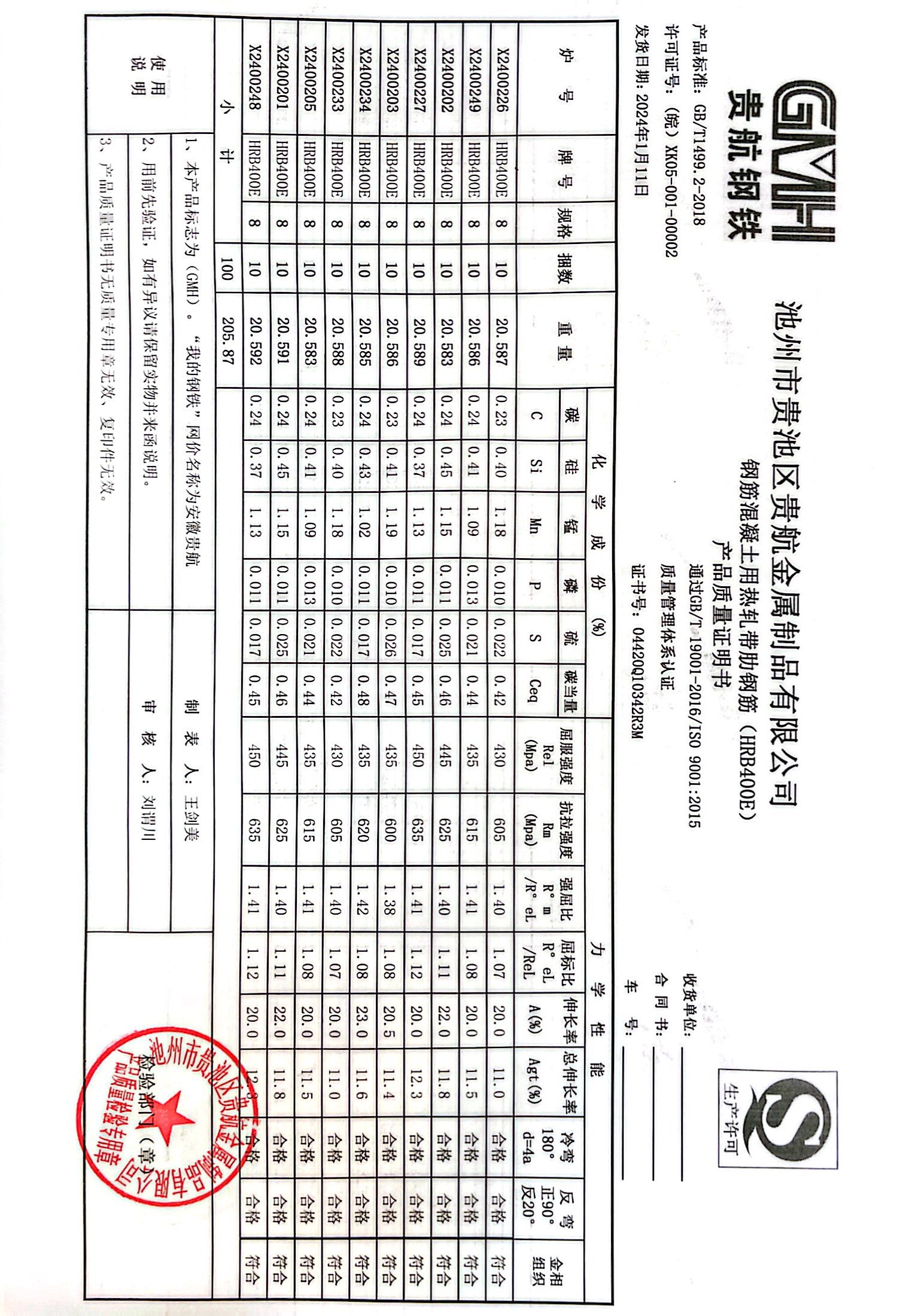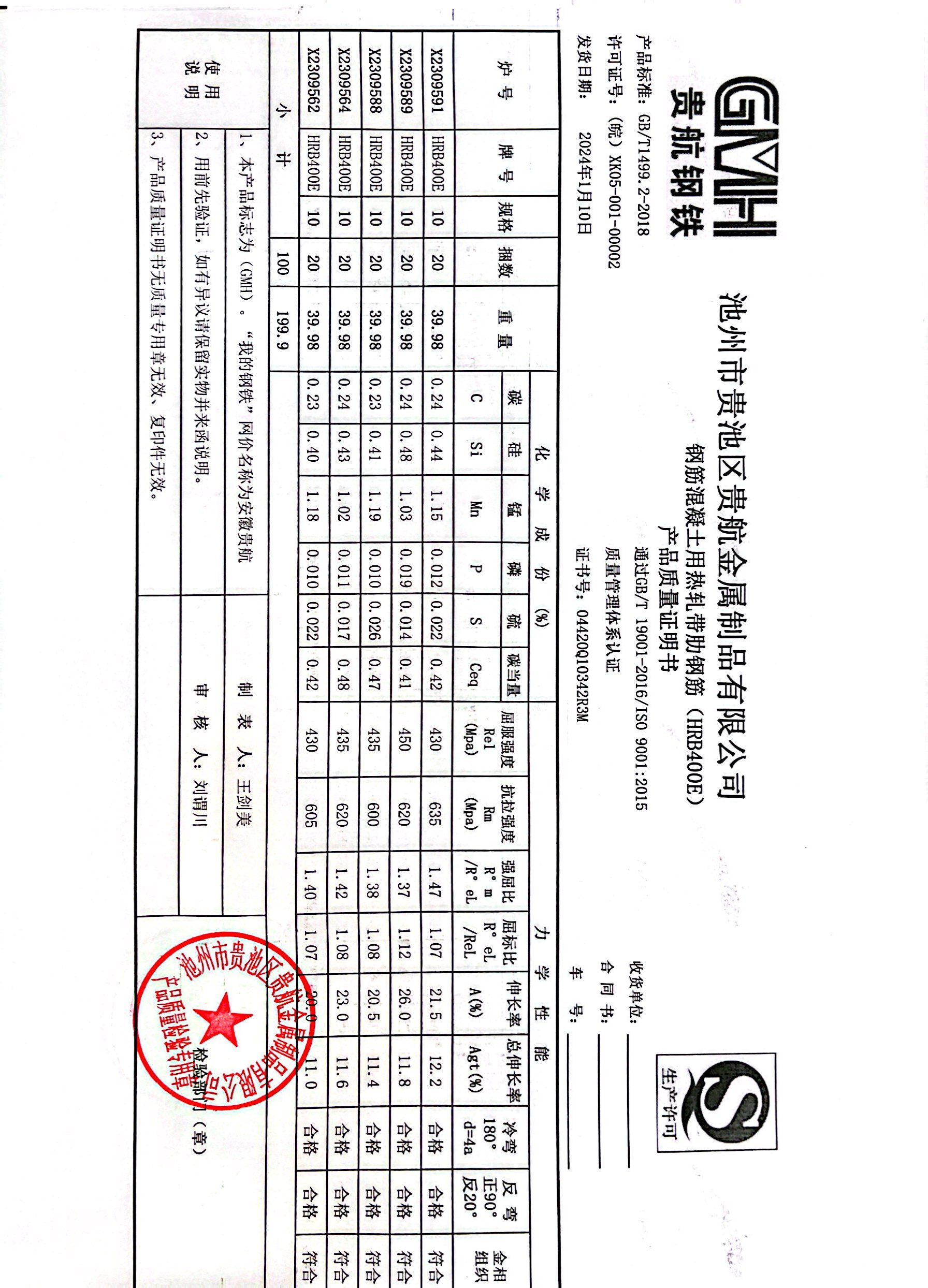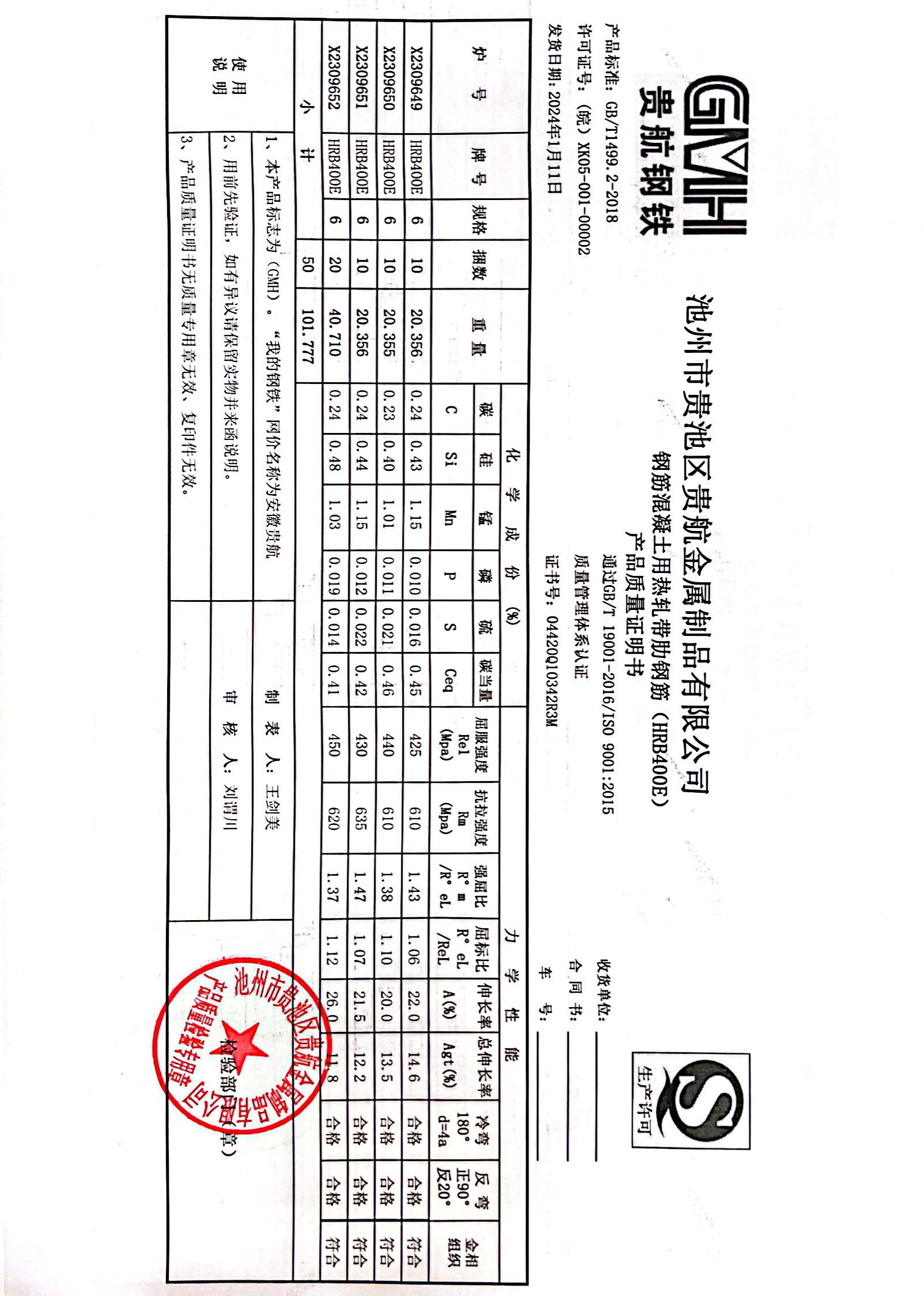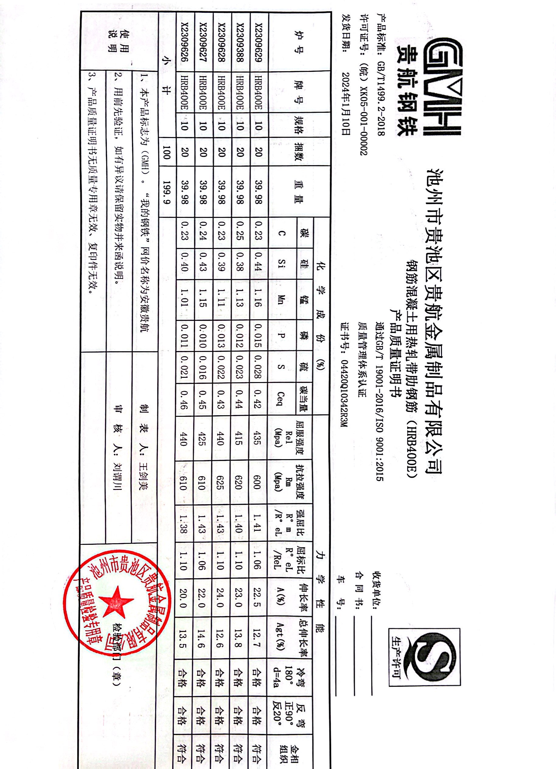 安徽省贵航特钢有限公司GH/JL-JZ-45提货单位:上海咏鑫实业有限公司3、如发现产品质问题,请在验收后5天内向我公司质科提出异议并保留实物,安徽省贵航特钢有限公司等我公司审验后处理,擅自使用我公司不负任何责任。