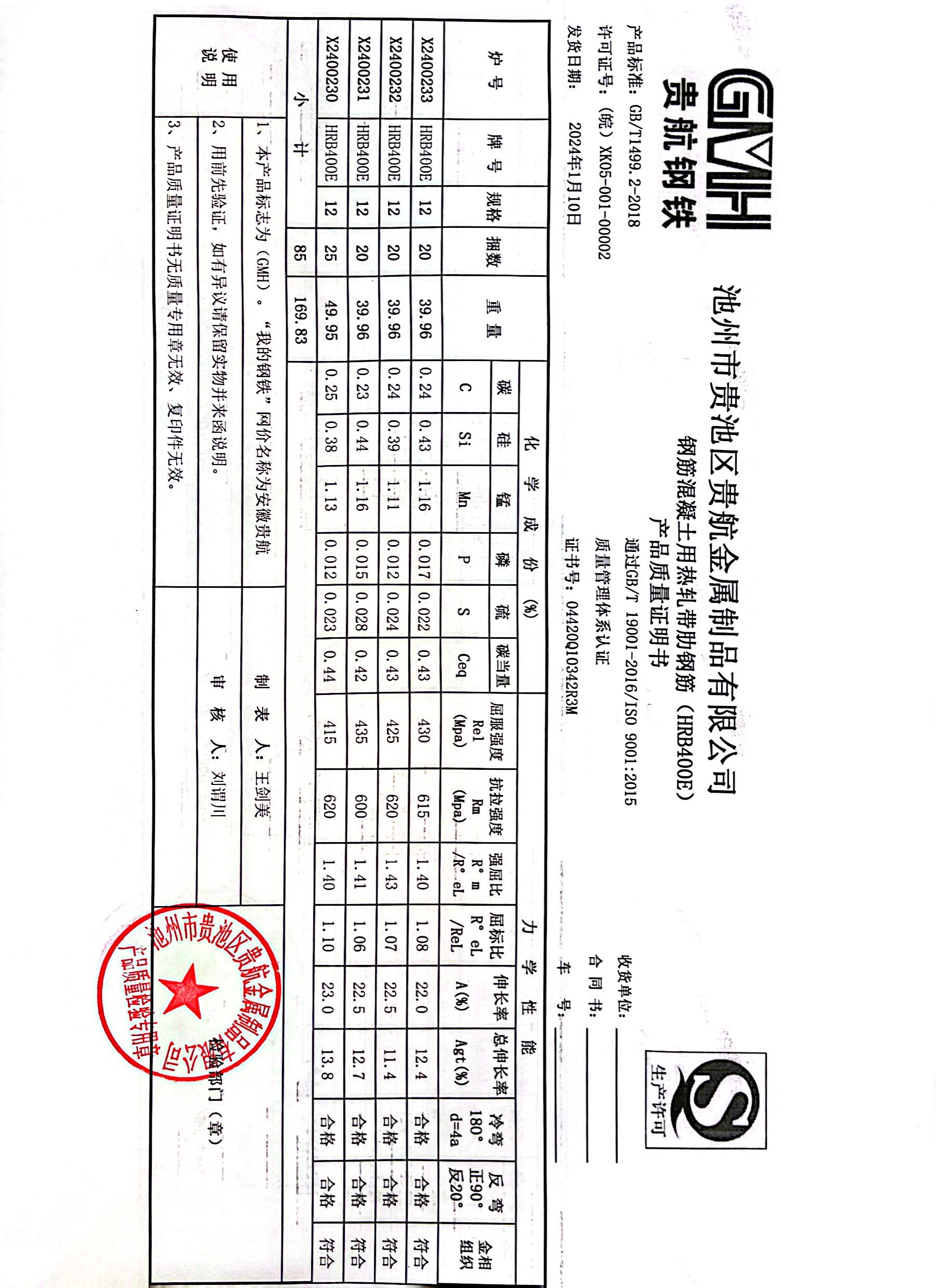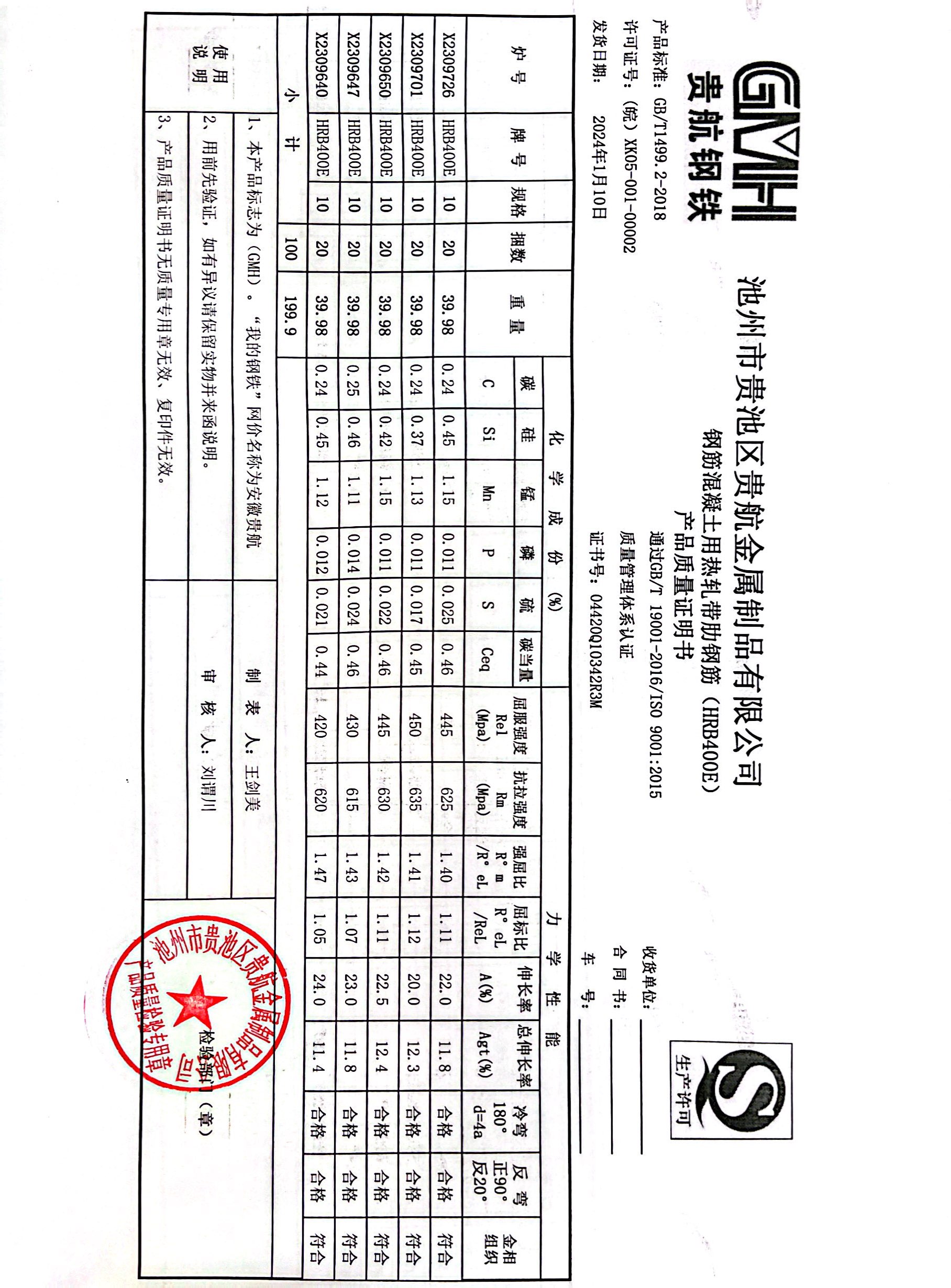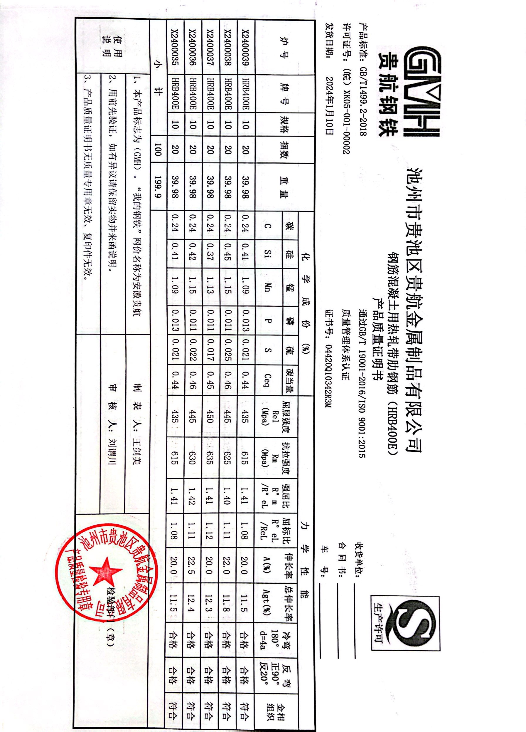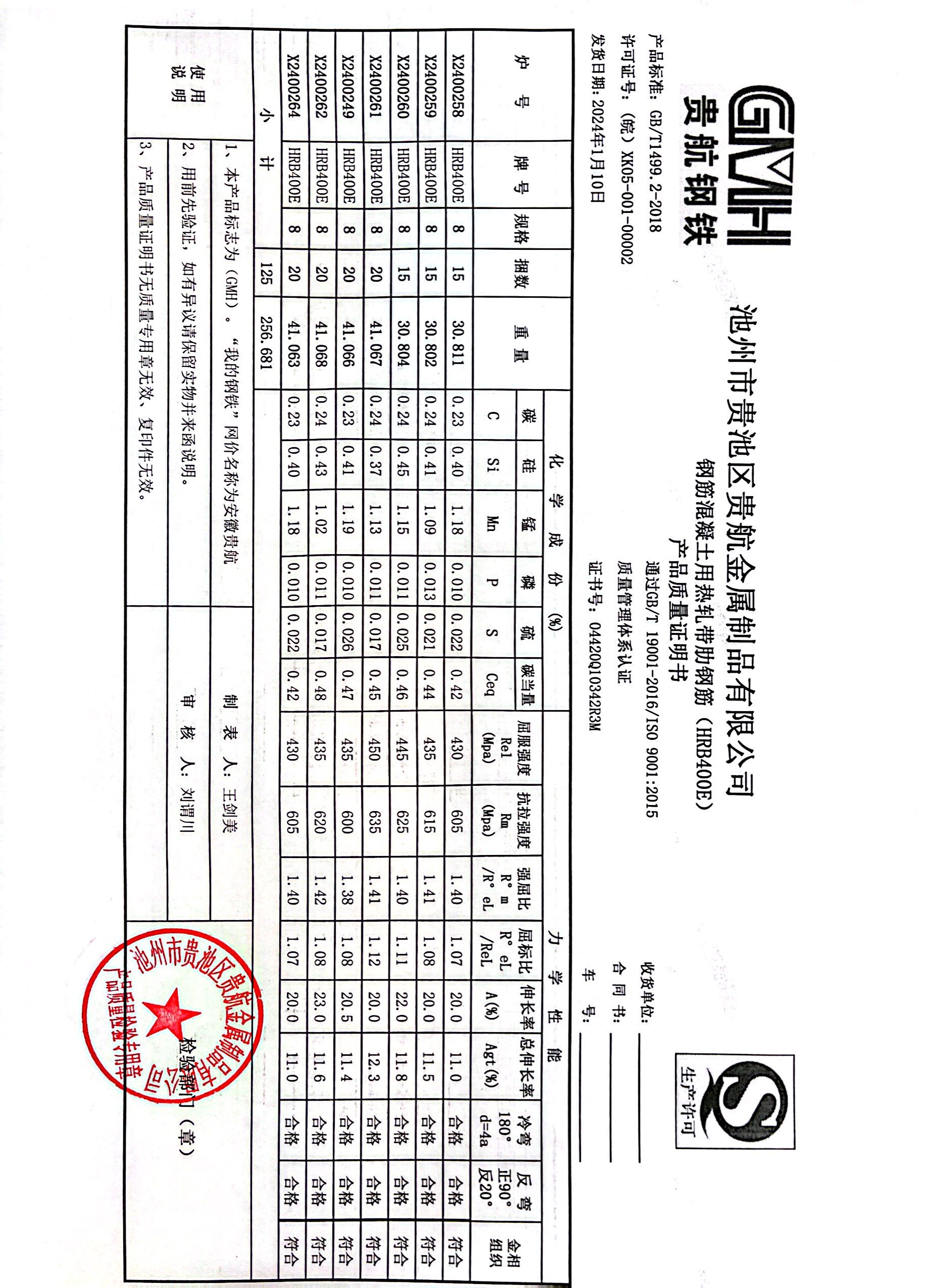 安徽省贵航特钢有限公司GH/JL-JZ-45提货单位:上海咏鑫实业有限公司3、如发现产品质问题,请在验收后5天内向我公司质科提出异议并保留实物,安省贵航特钢有限公司等我公司审验后处理,擅自使用我公司不负任何责任