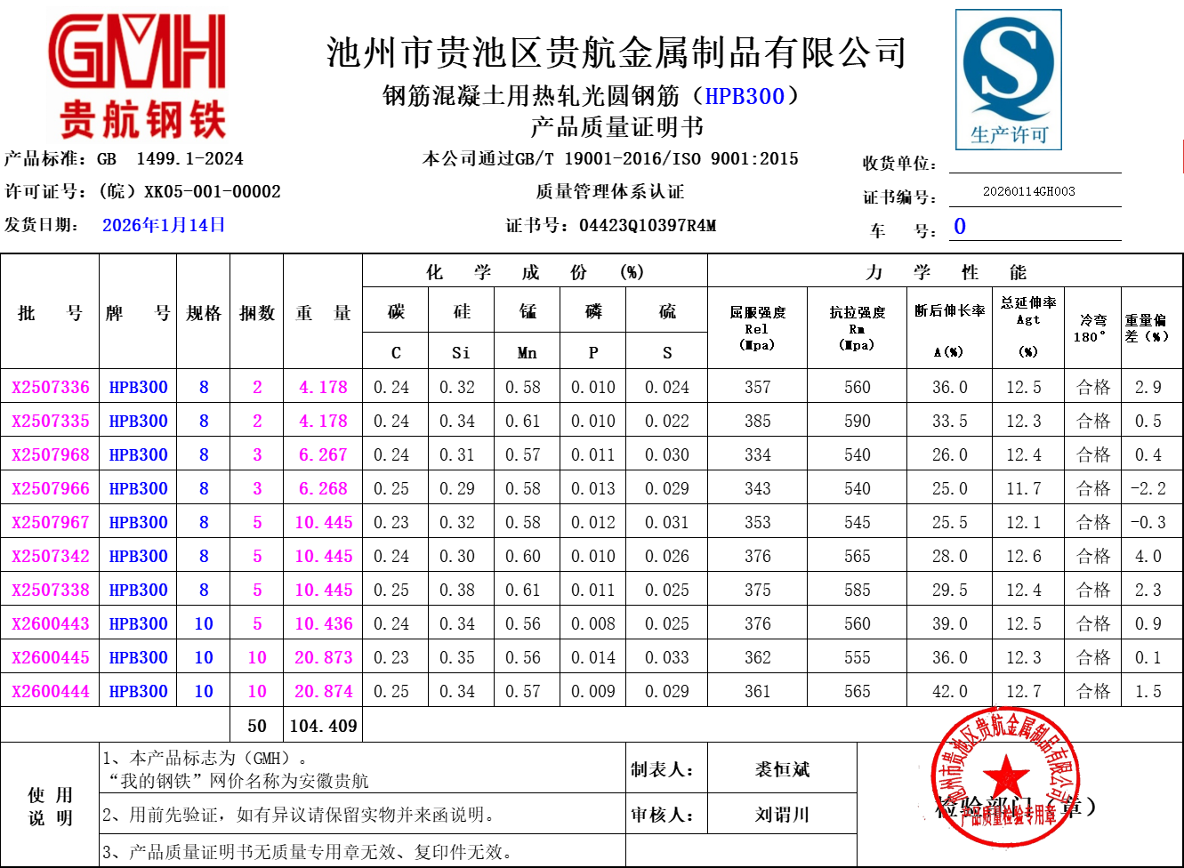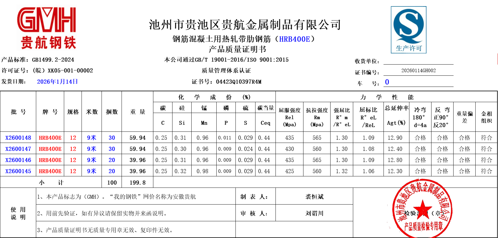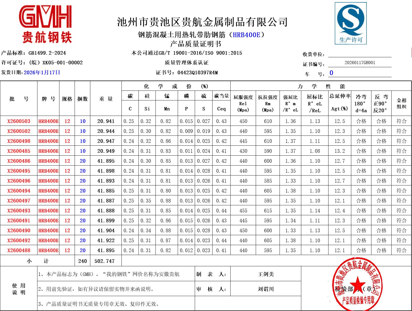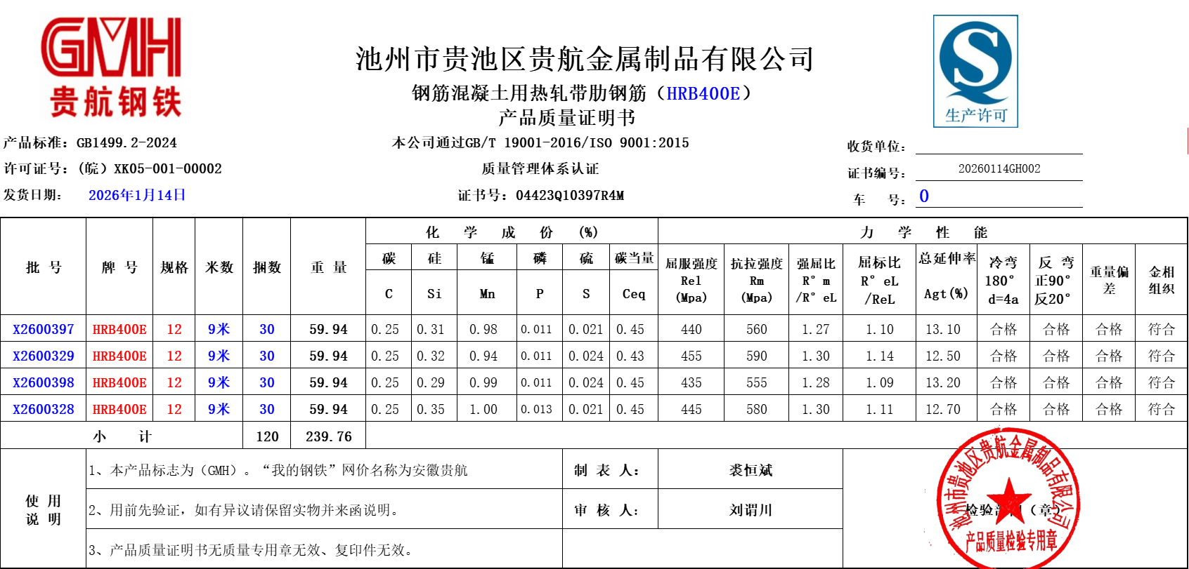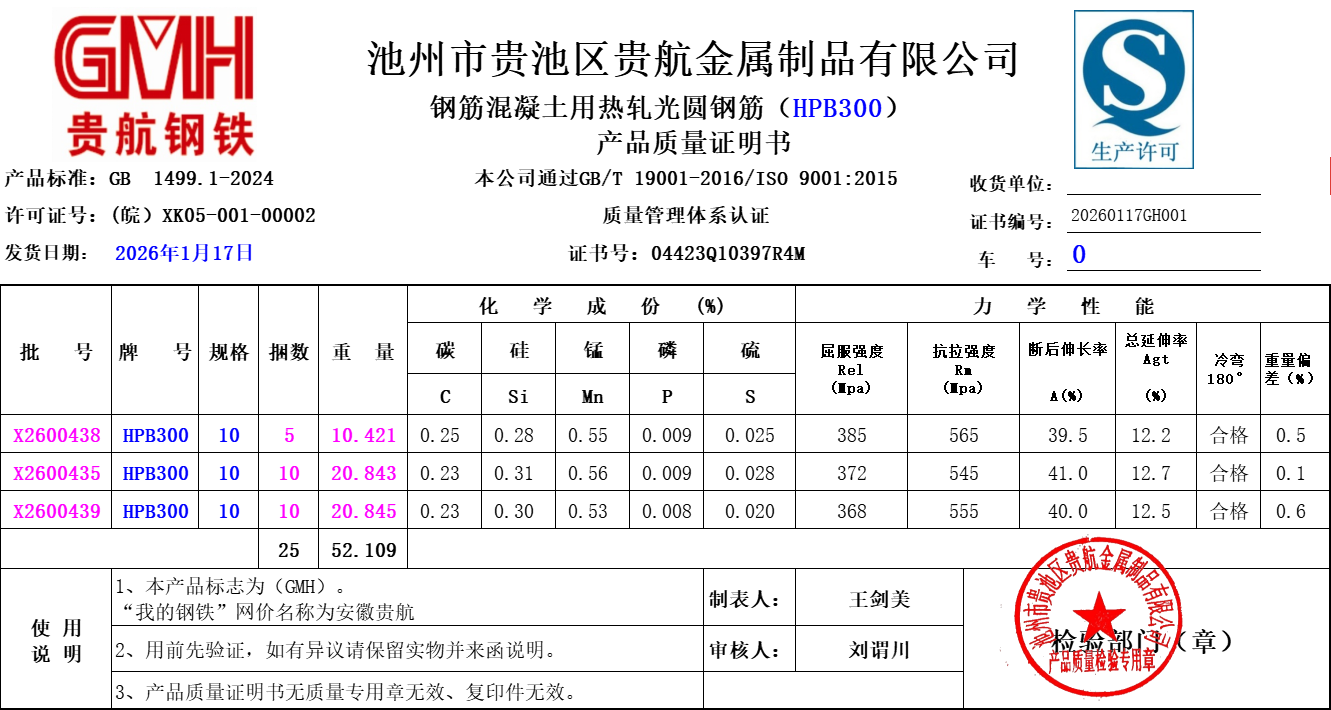 池州市贵池区贵航金属制品有限公司本公司通过GB/T19001-2016/ISO9001:2015