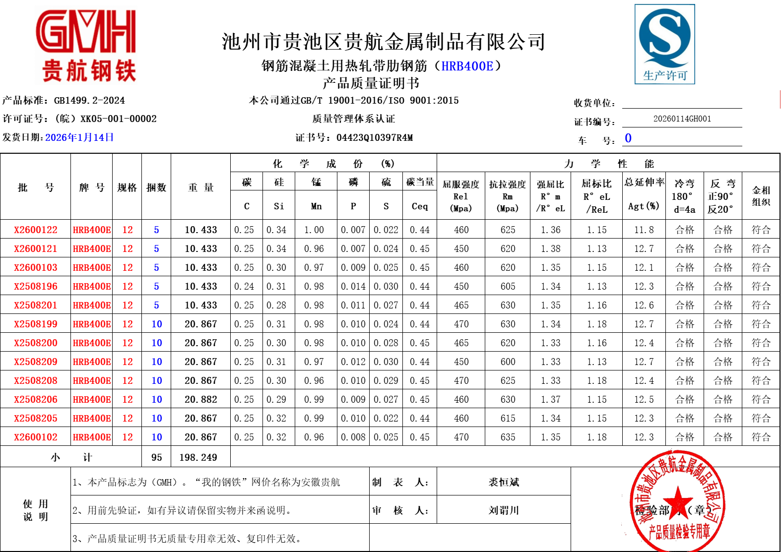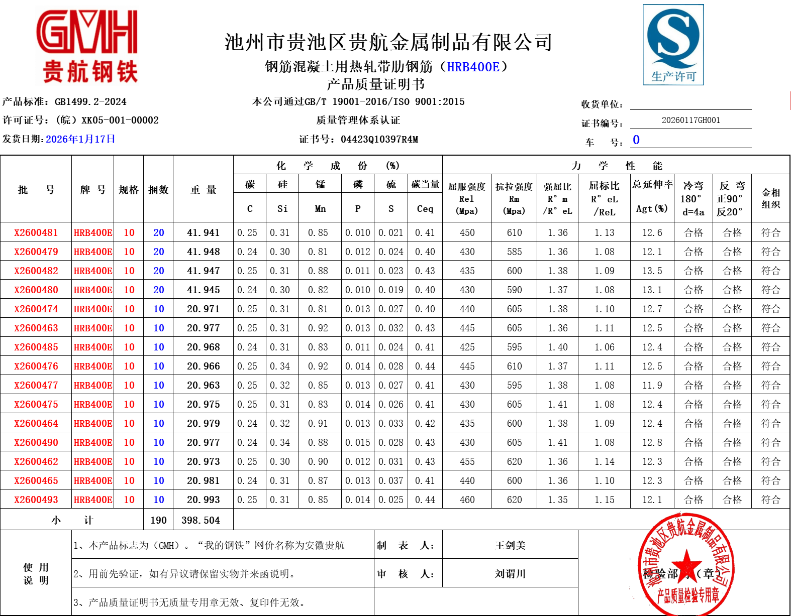 池州市贵池区贵航金属制品有限公司本公司通过GB/T19001-2016/ISO 9001:2015