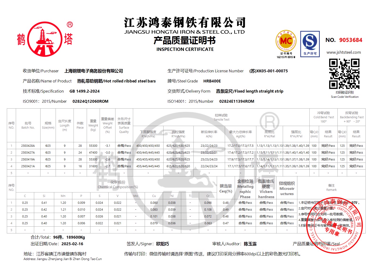 江苏鸿泰钢铁有限公司9053684上海钢银电子商务股份有限公司