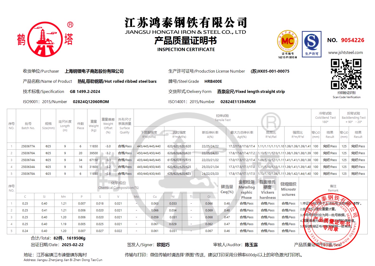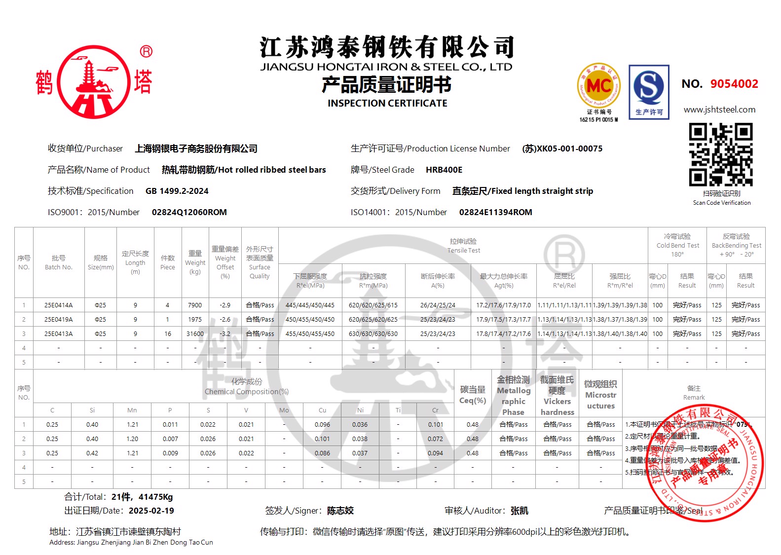 江苏鸿泰钢铁有限公司9052774上海钢银电子商务股份有限公司
