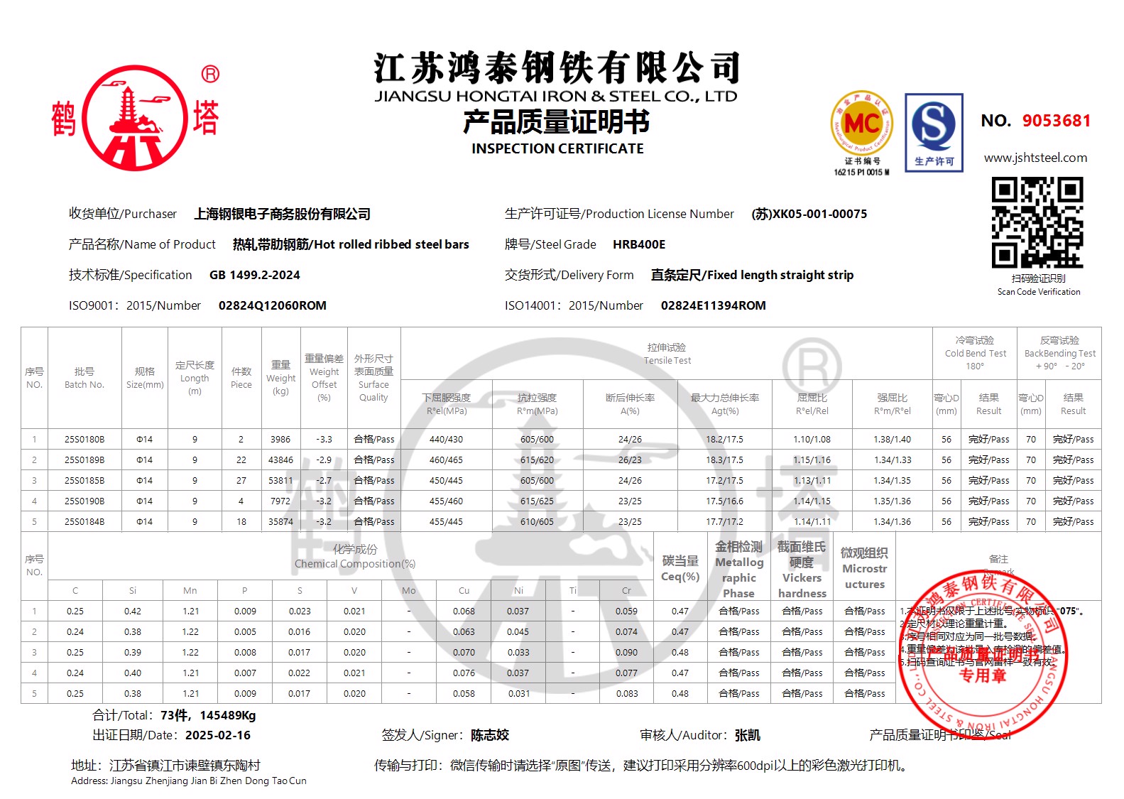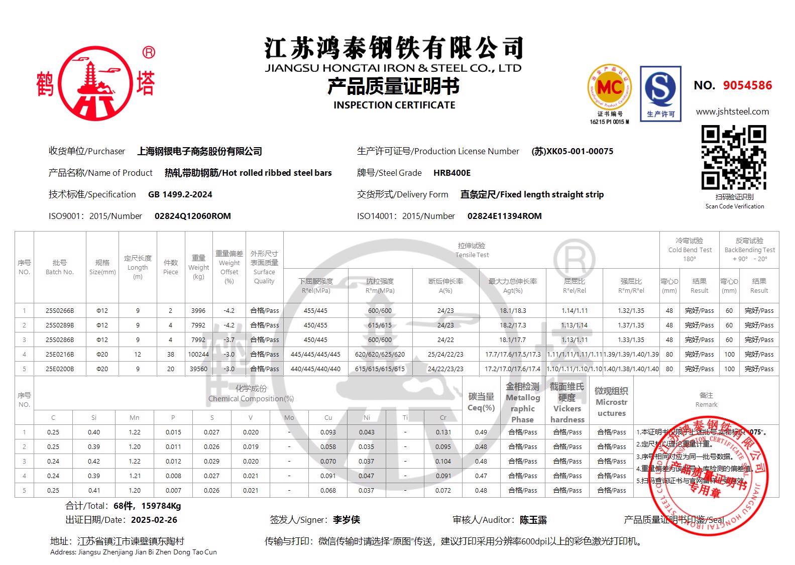 江苏鸿泰钢铁有限公司9052773上海钢银电子商务股份有限公司