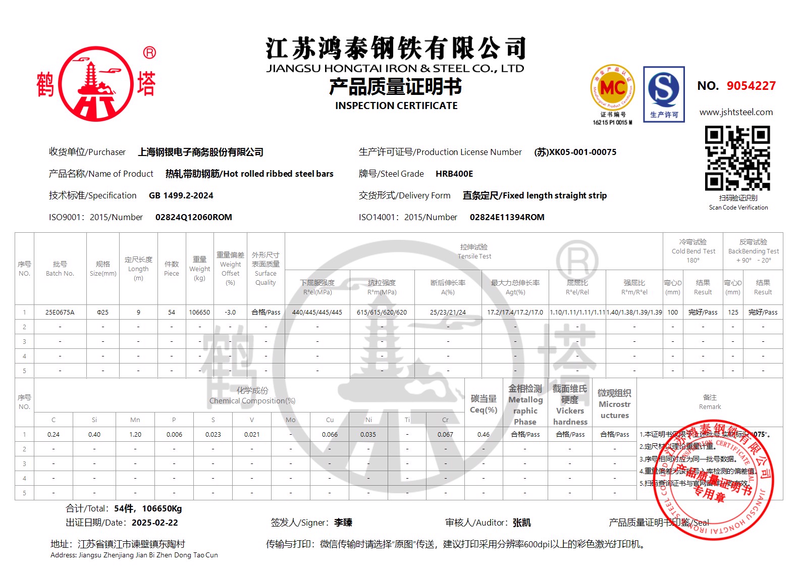 江苏鸿泰钢铁有限公司9054225上海钢银电子商务股份有限公司