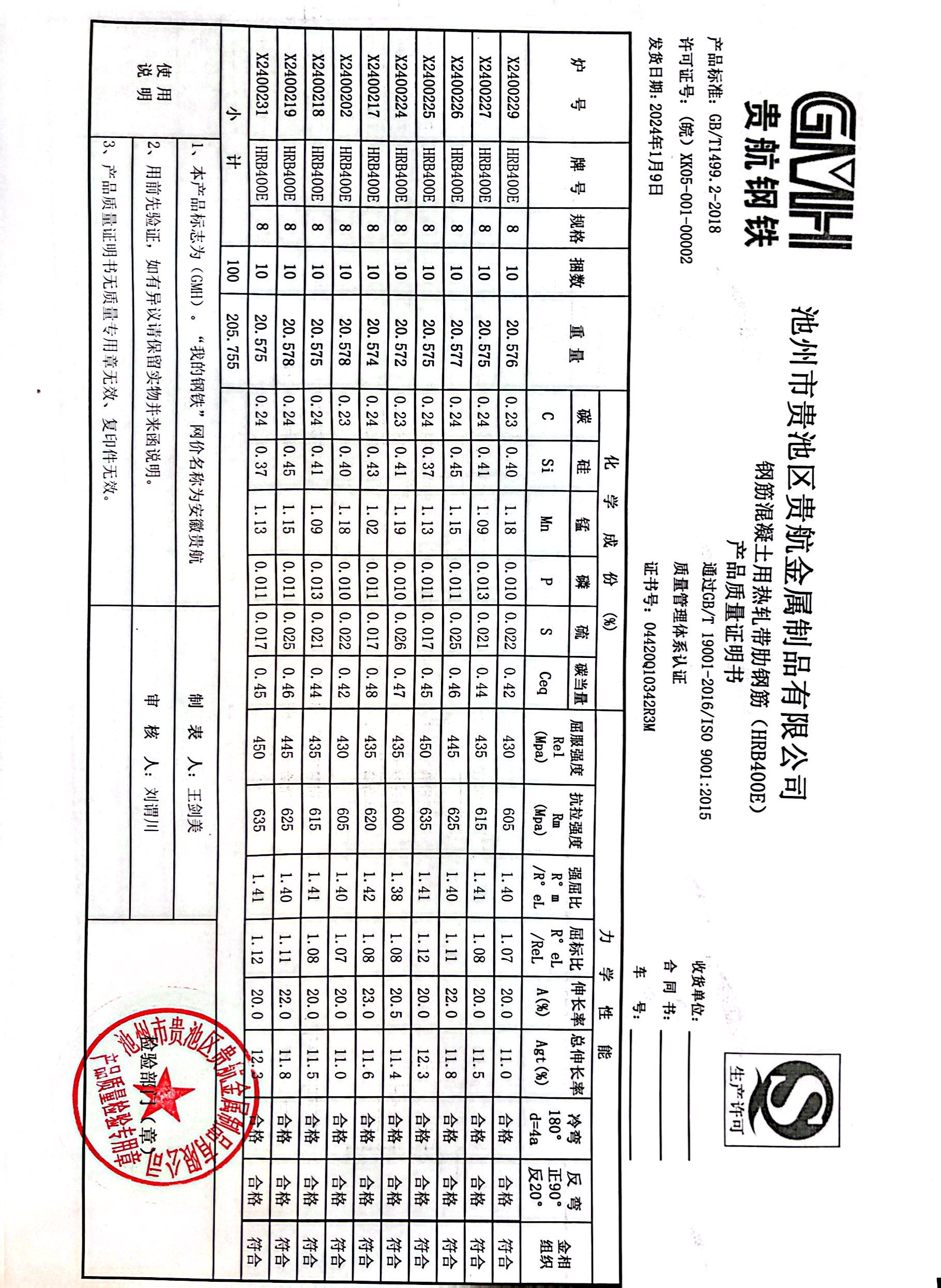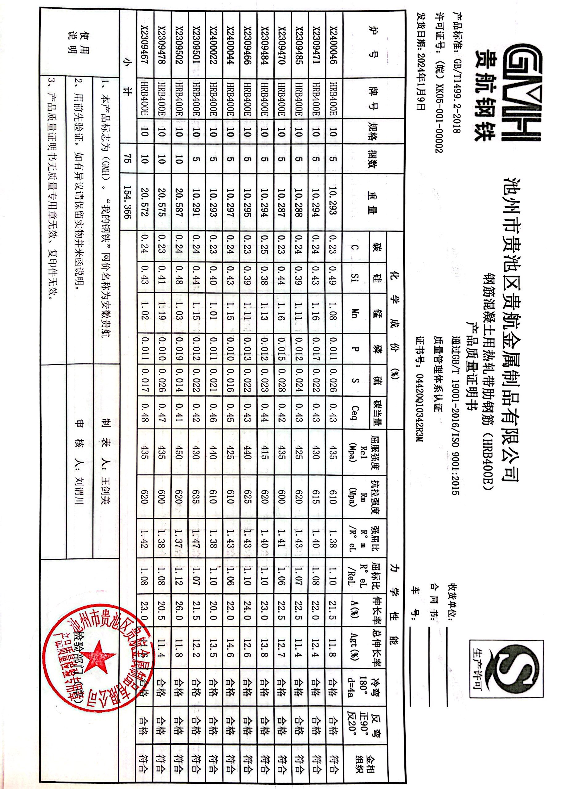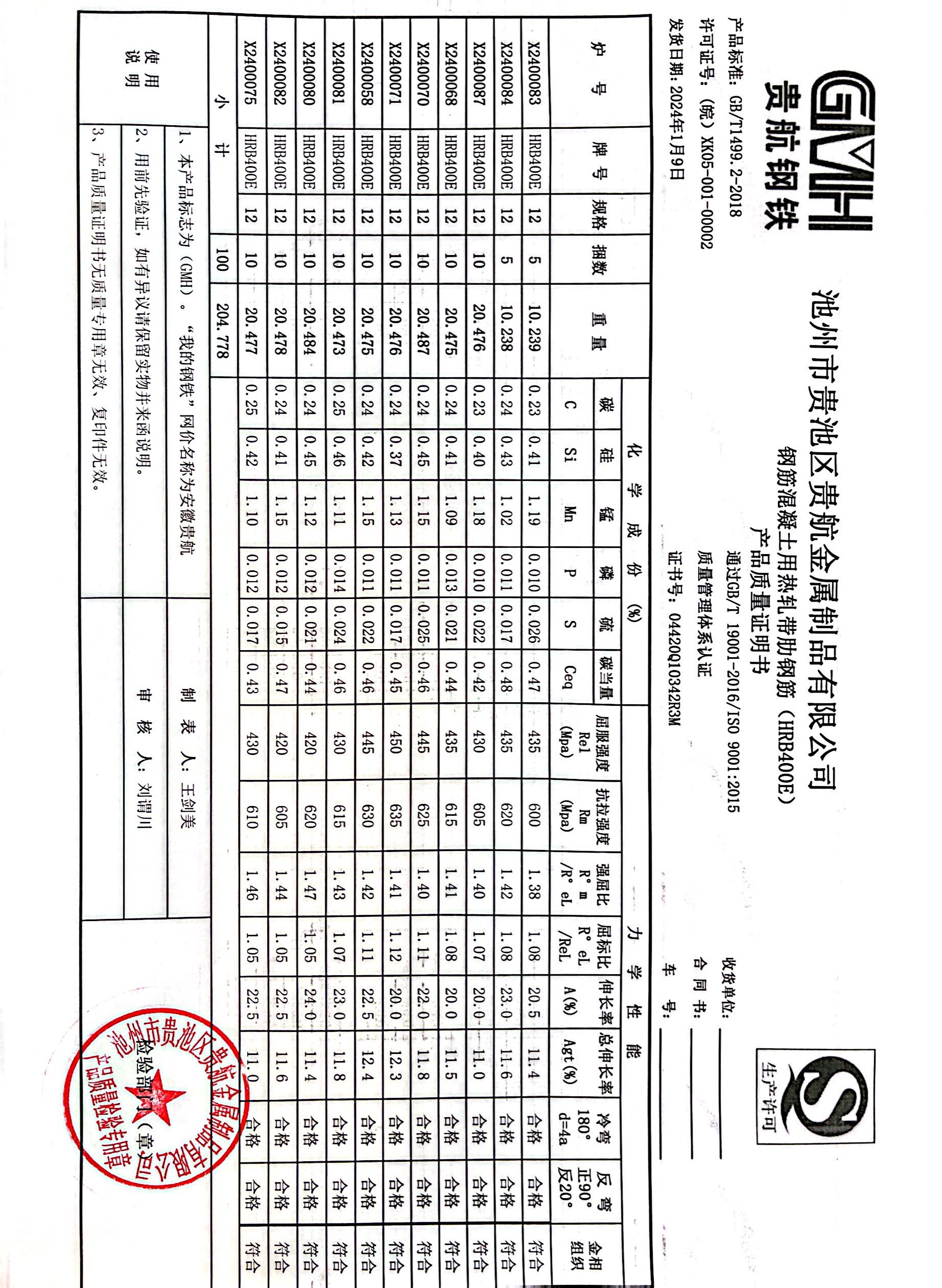 丹阳龙江钢铁有限公司质量证明书天津启润投资有限公司