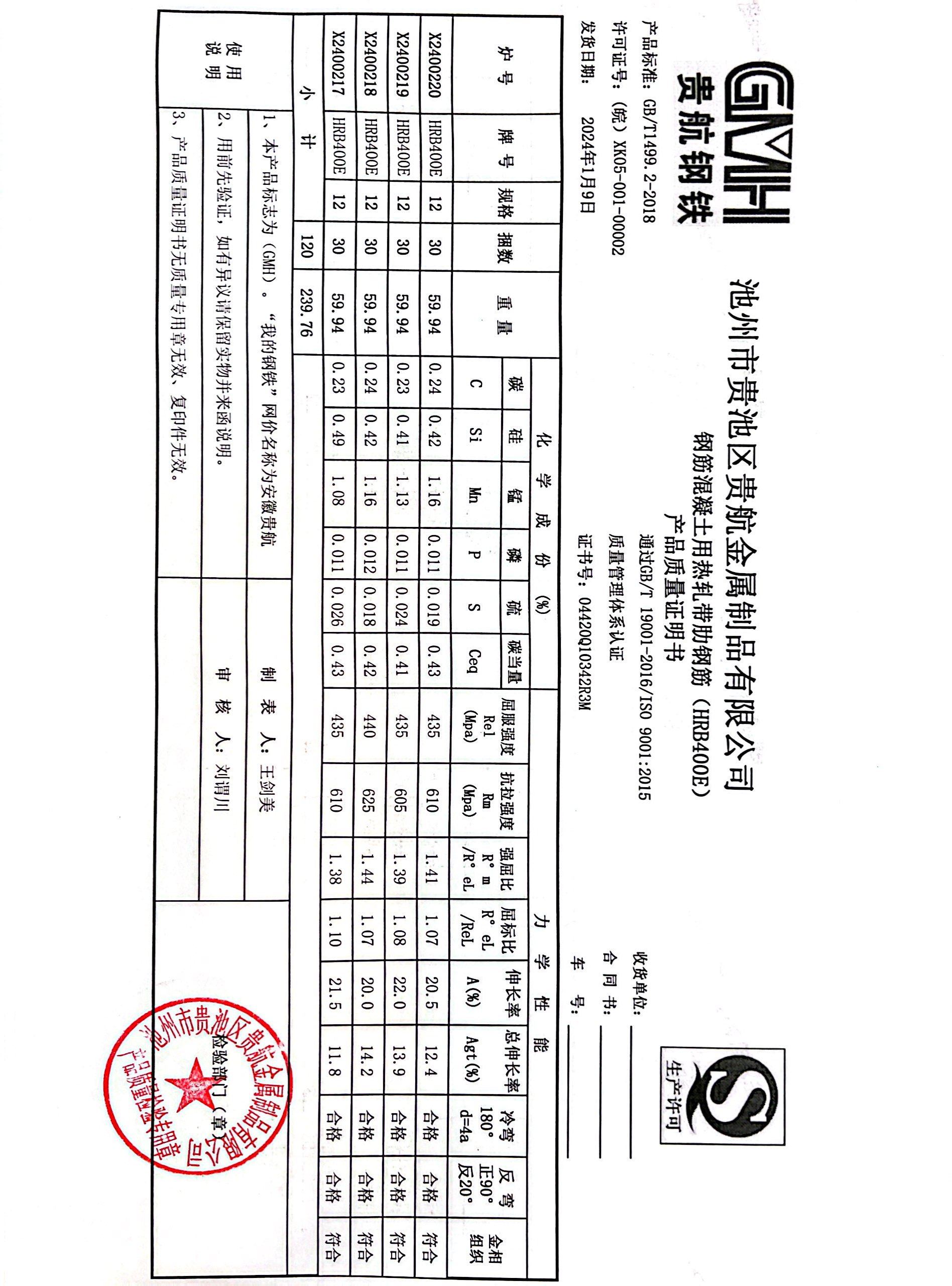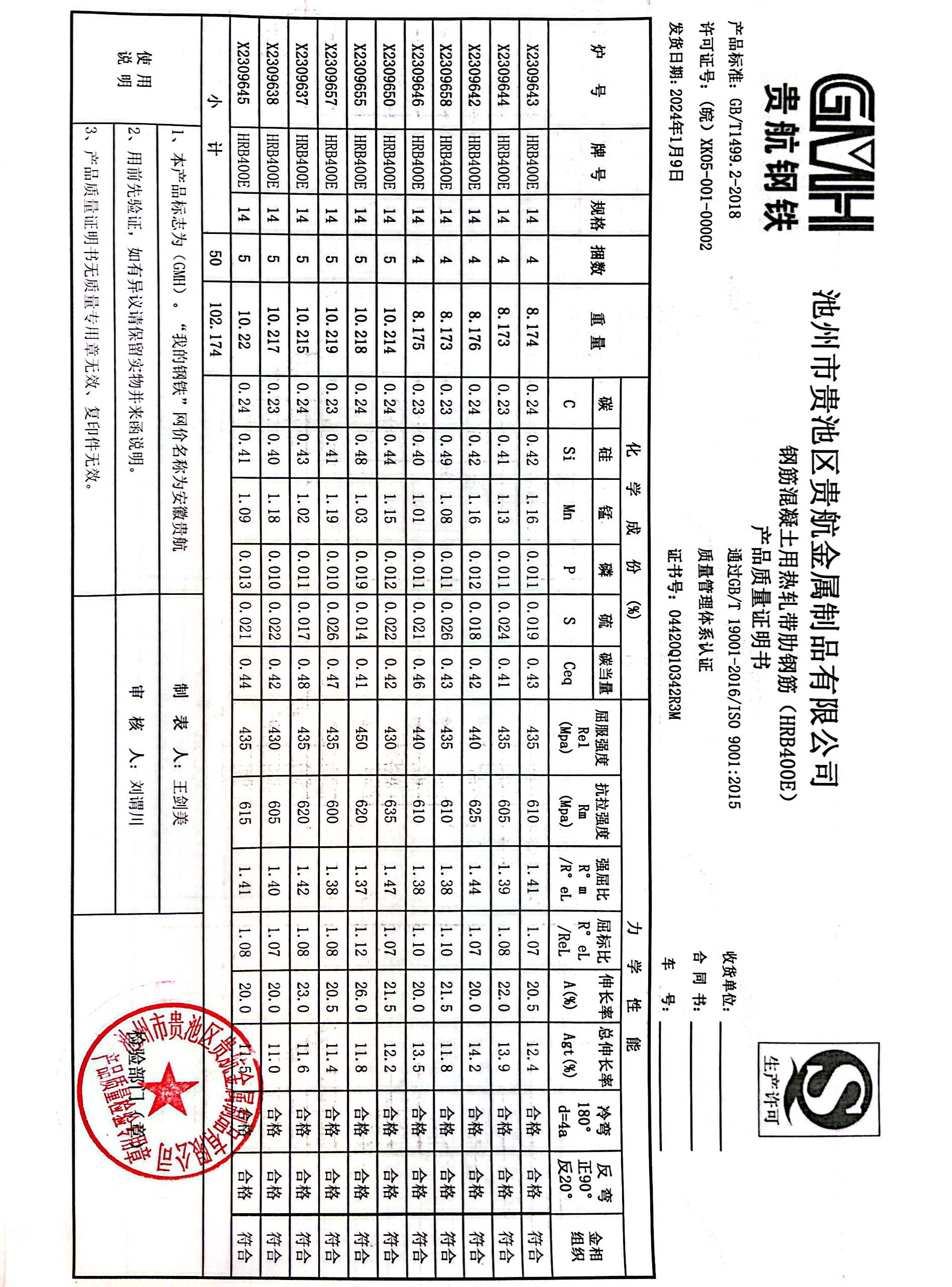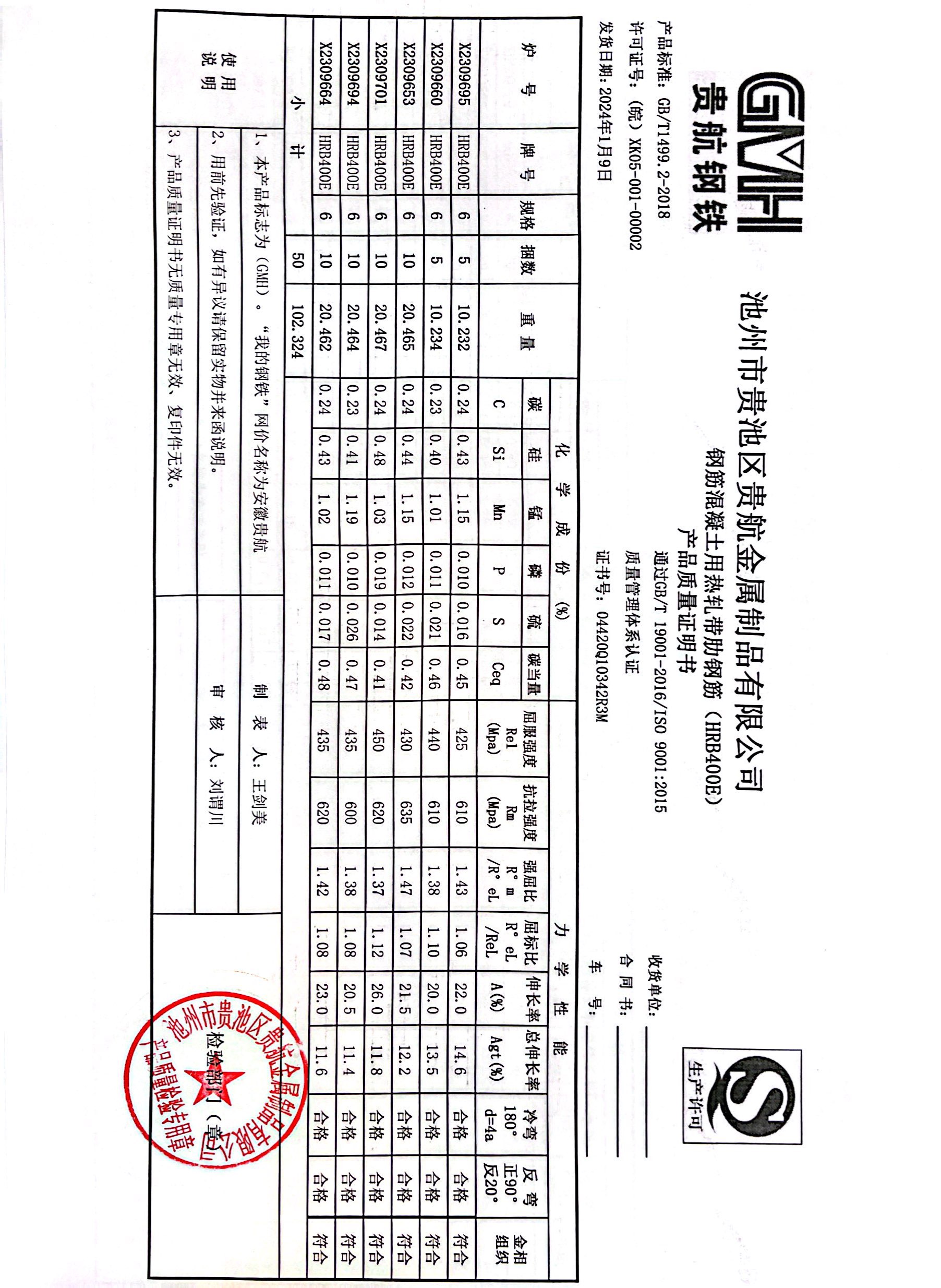 丹阳龙江钢铁有限公司质量证明书天津启润投资有限公司