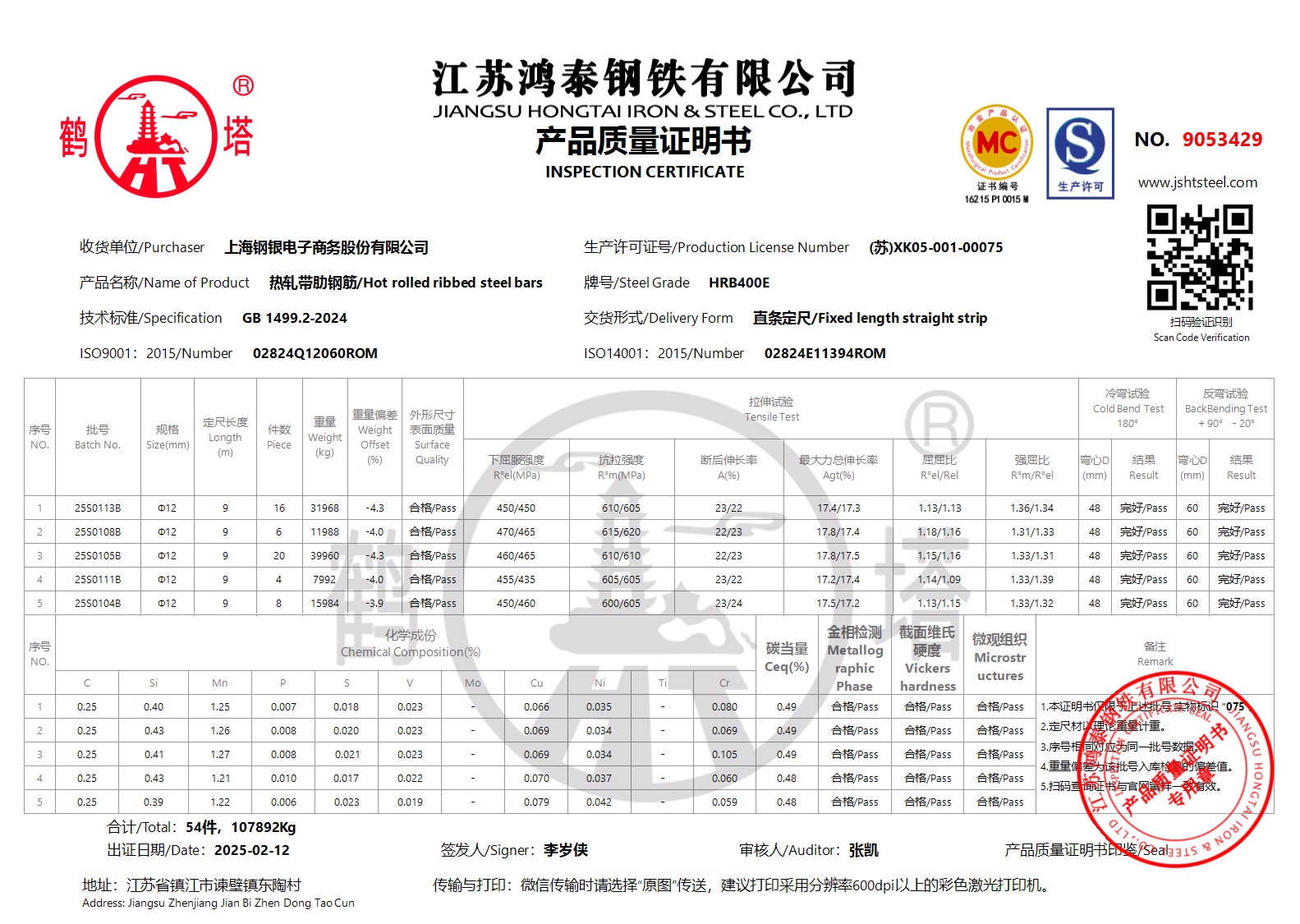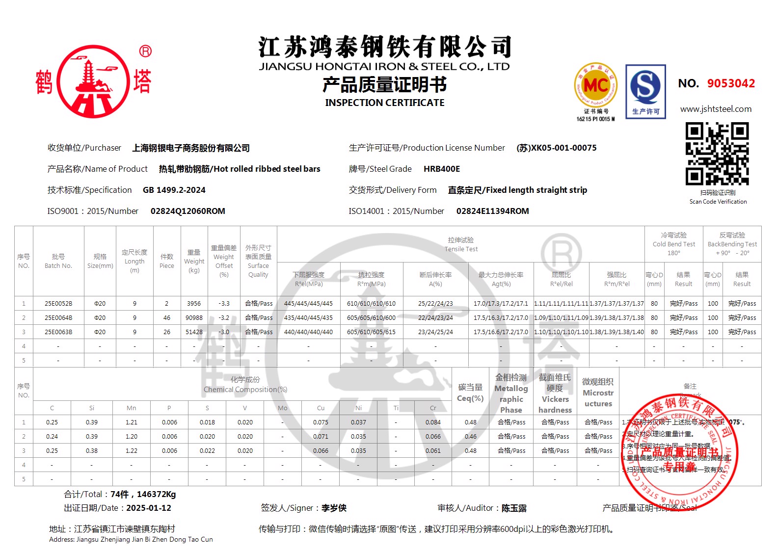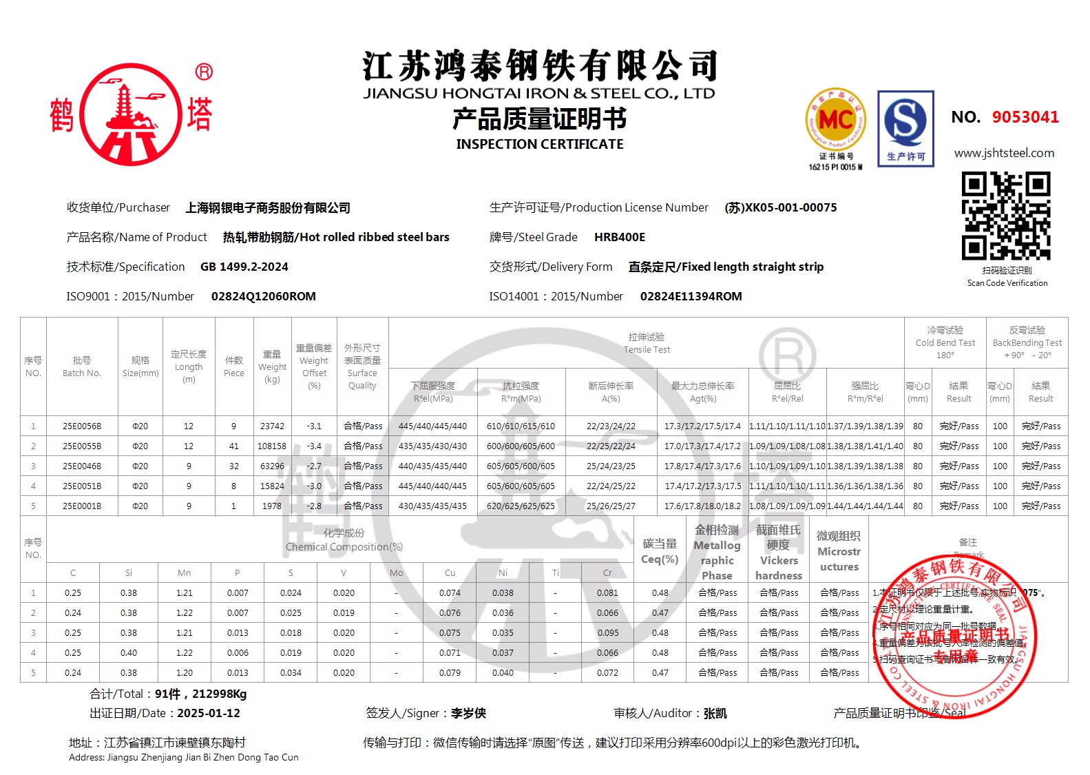江苏鸿泰钢铁有限公司9052394上海钢银电子商务股份有限公司