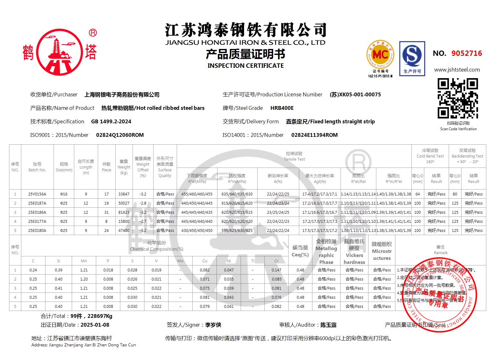 江苏鸿泰钢铁有限公司9052716上海钢银电子商务股份有限公司