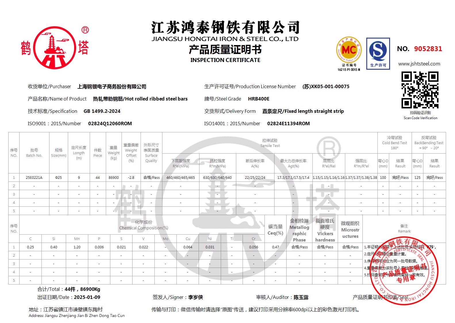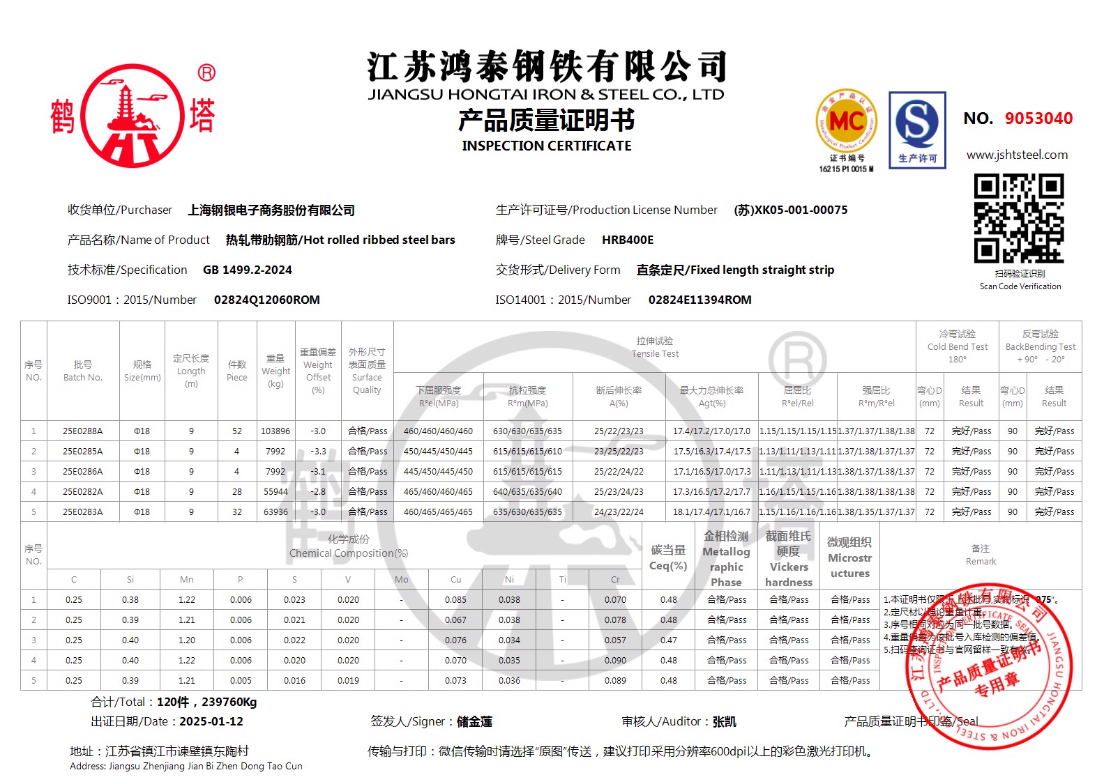 江苏鸿泰钢铁有限公司9053040上海钢银电子商务股份有限公司
