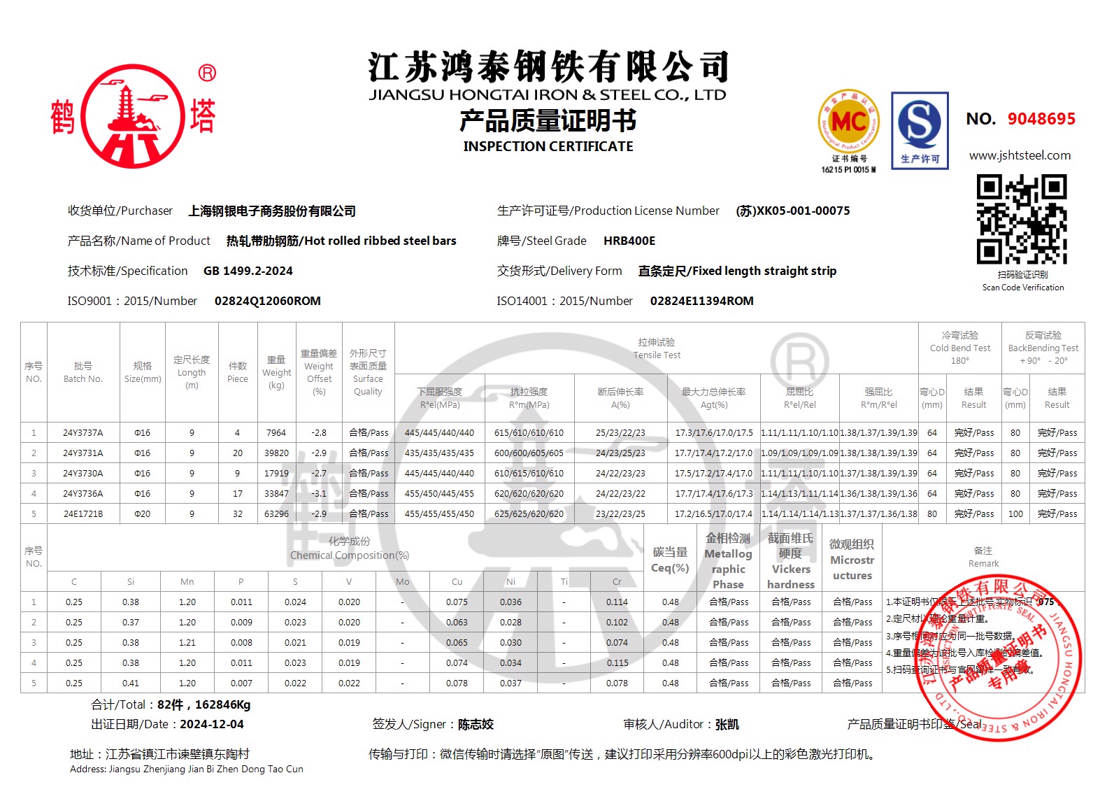 江苏鸿泰钢铁有限公司9048695上海钢银电子商务股份有限公司