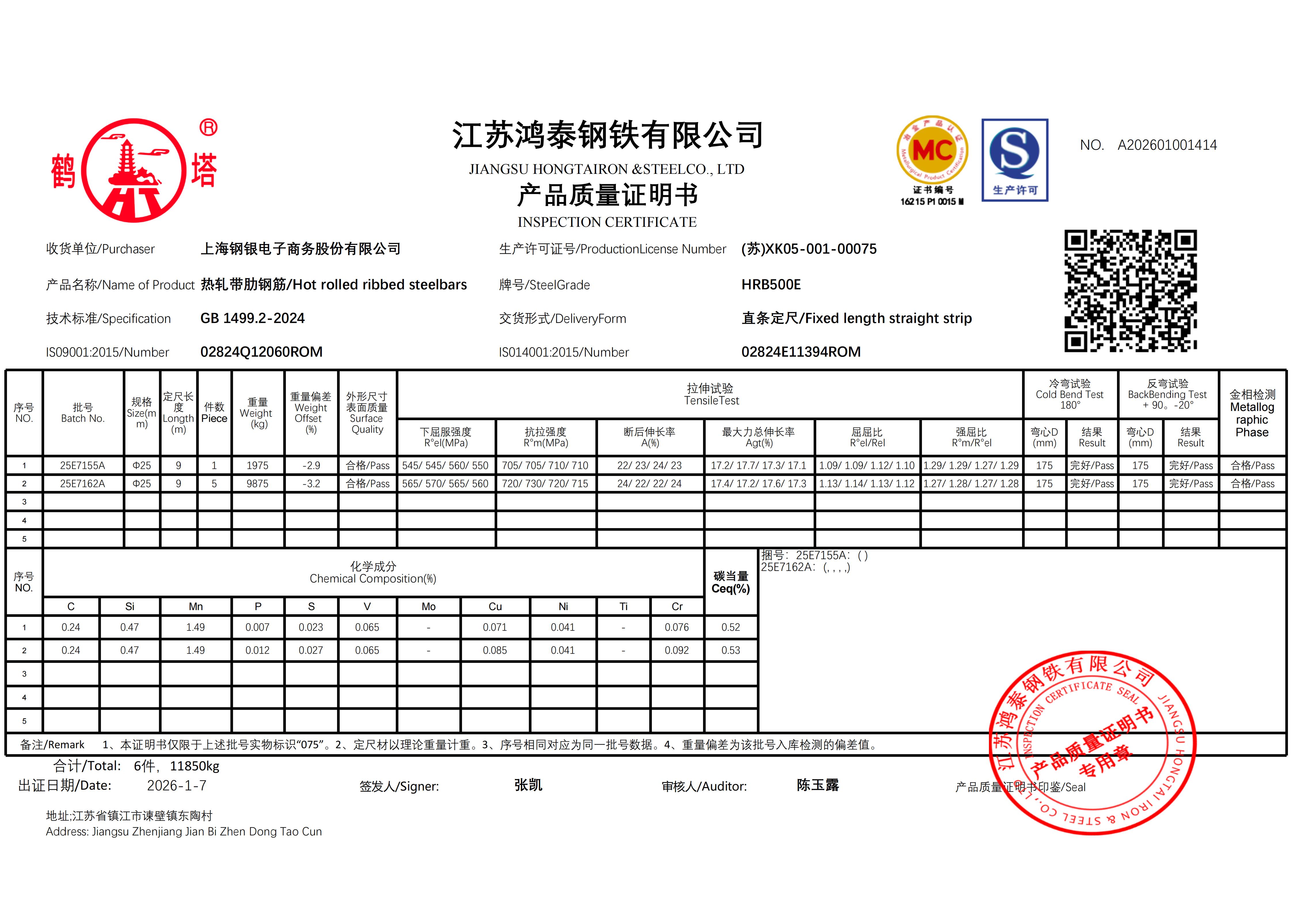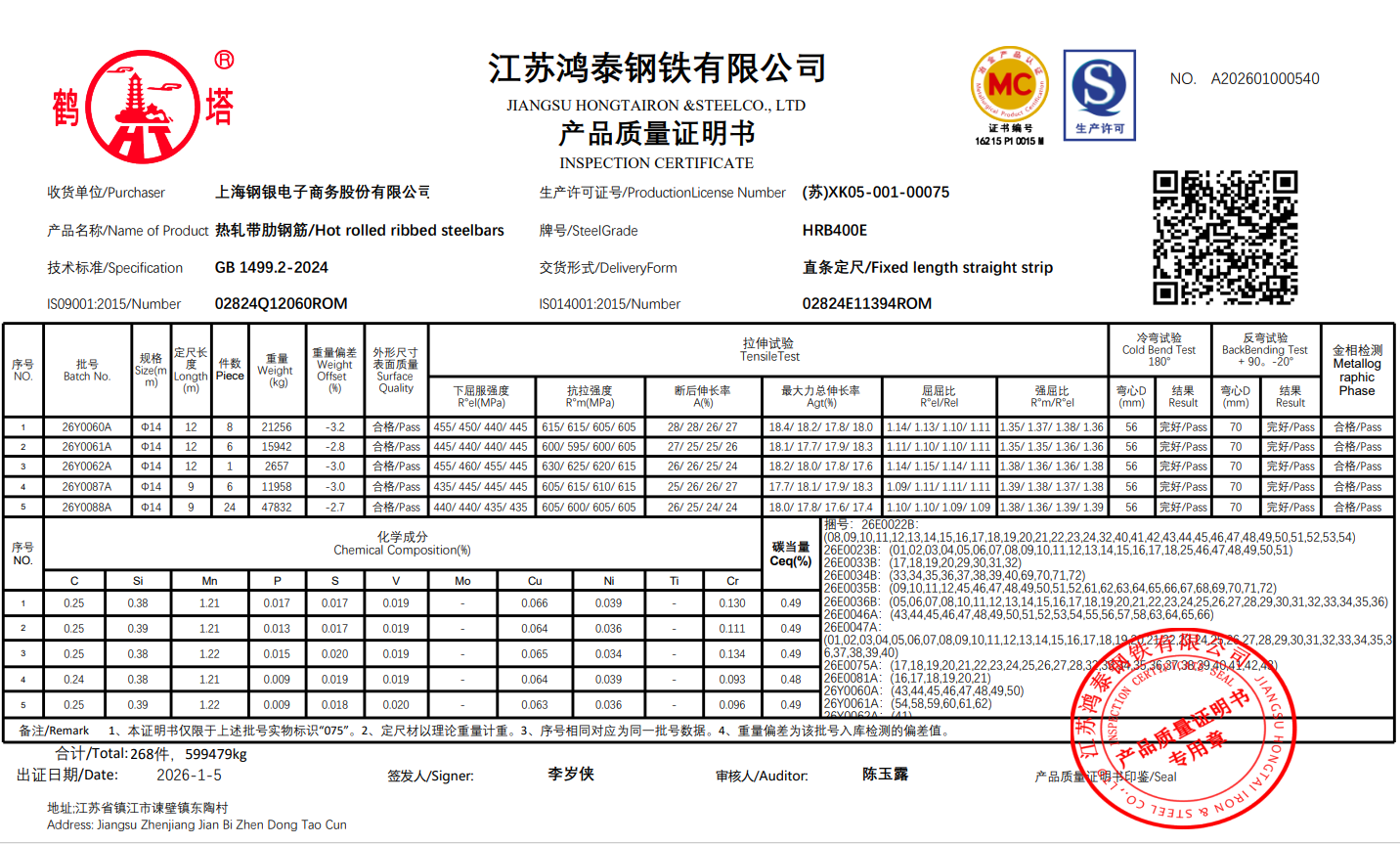 江苏鸿泰钢铁有限公司 A202601001414上海钢银电子商务股份有限公司NO