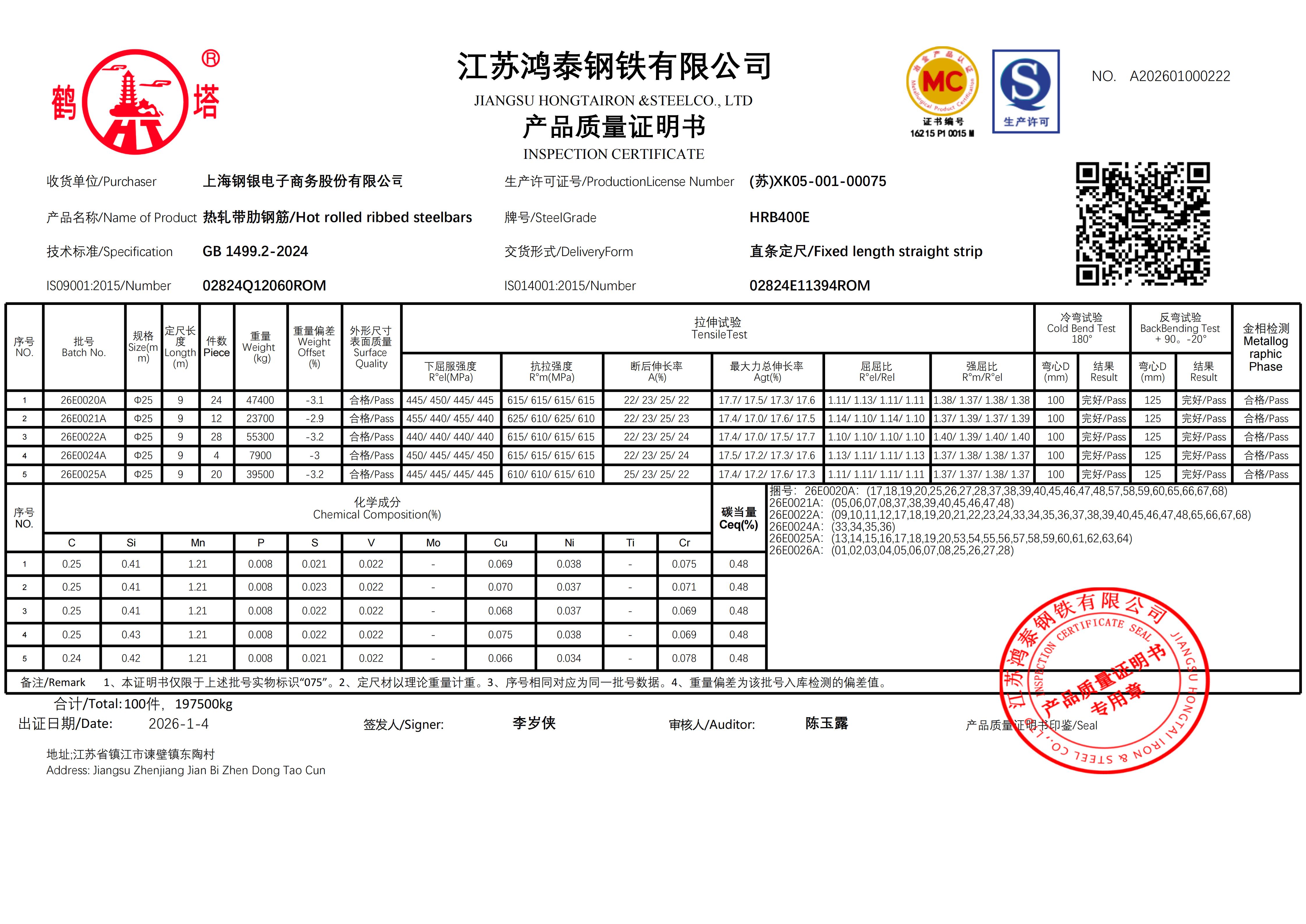 江苏鸿泰钢铁有限公司 A202601000222上海钢银电子商务股份有限公司NO