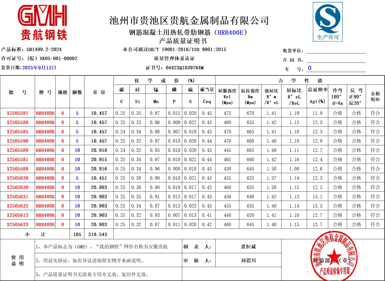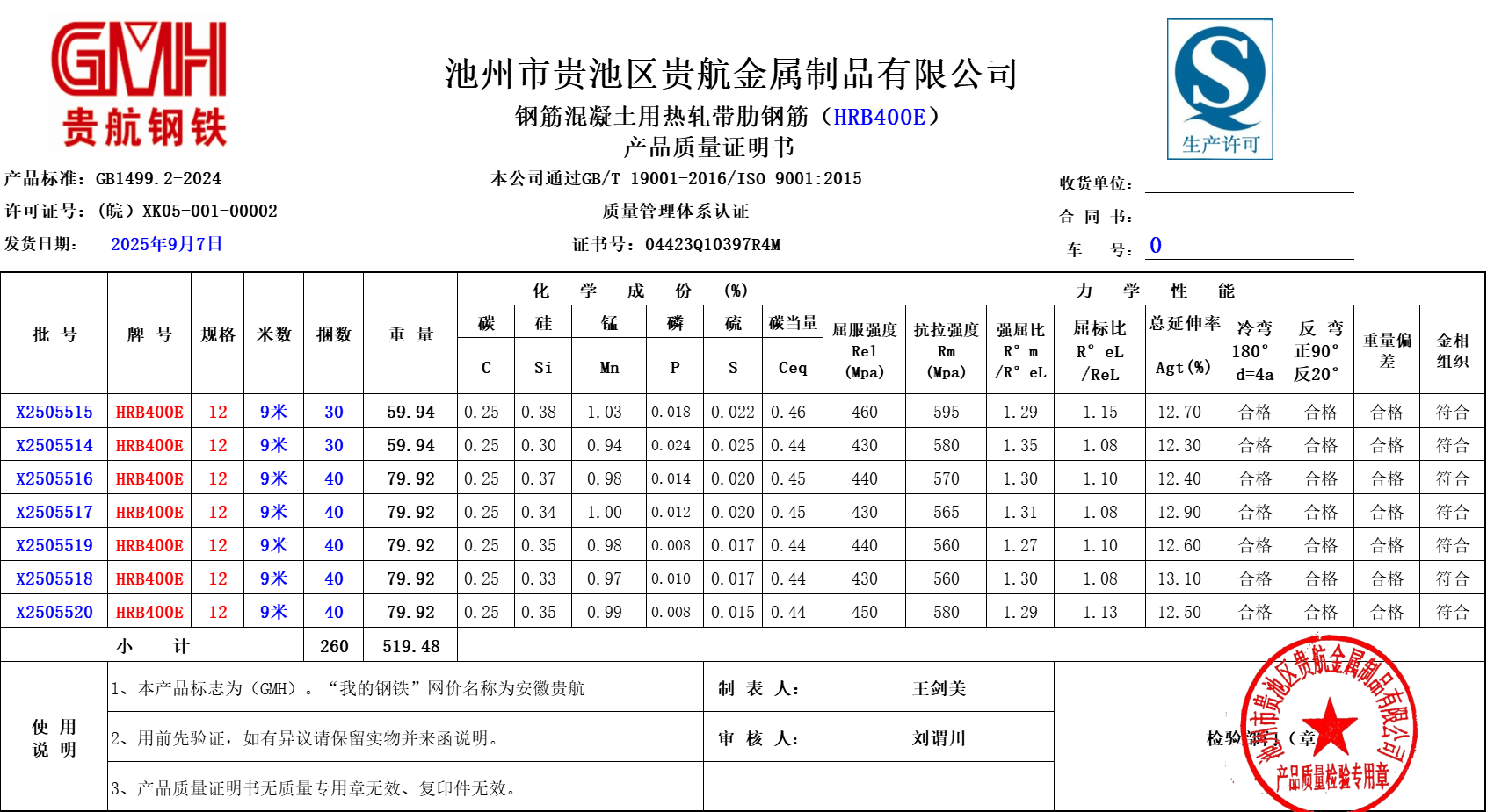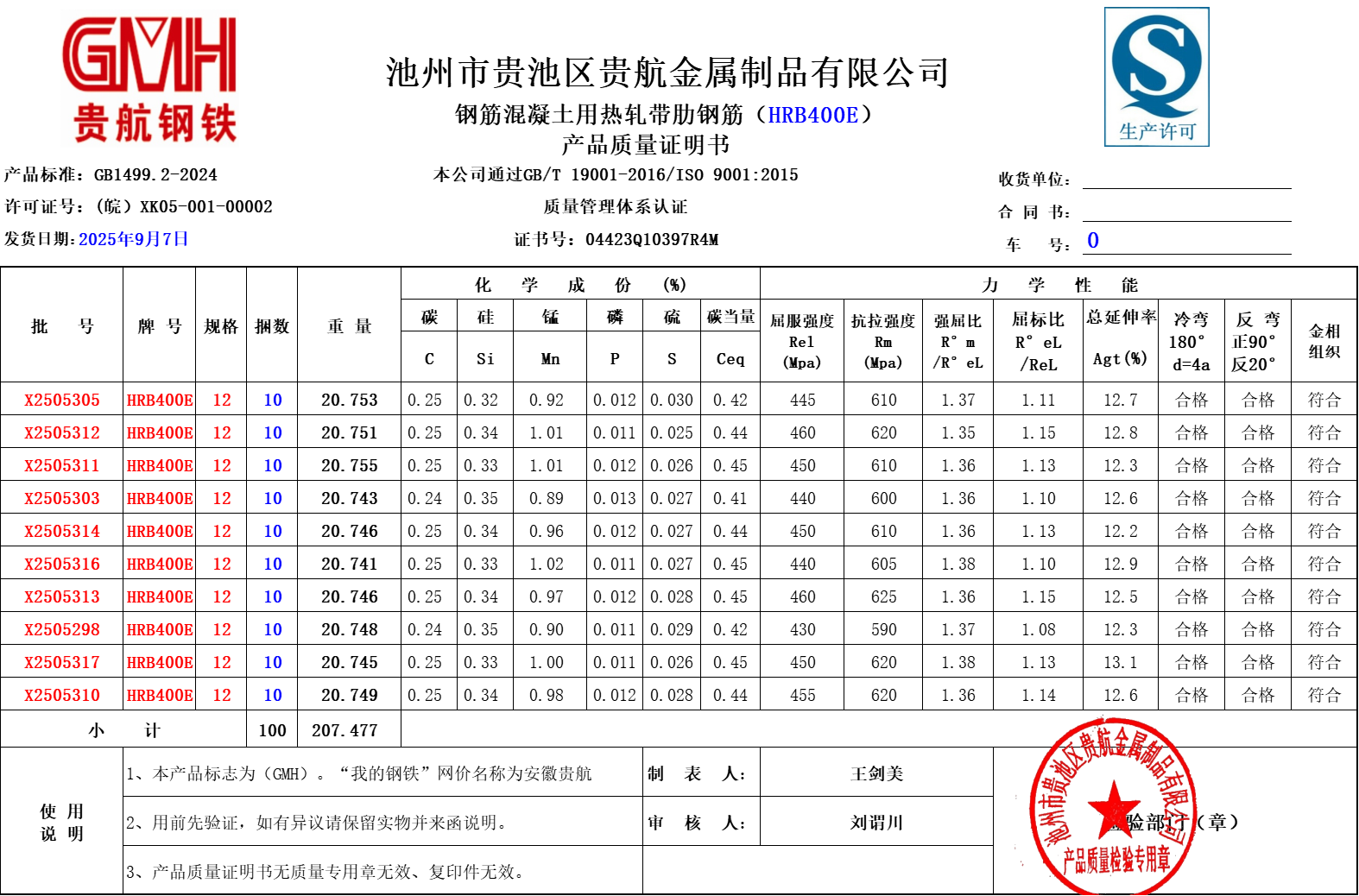 池州市贵池区贵航金属制品有限公司本公司通过GB/T19001-2016/ISO9001:2015
