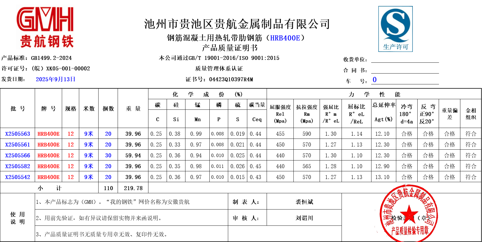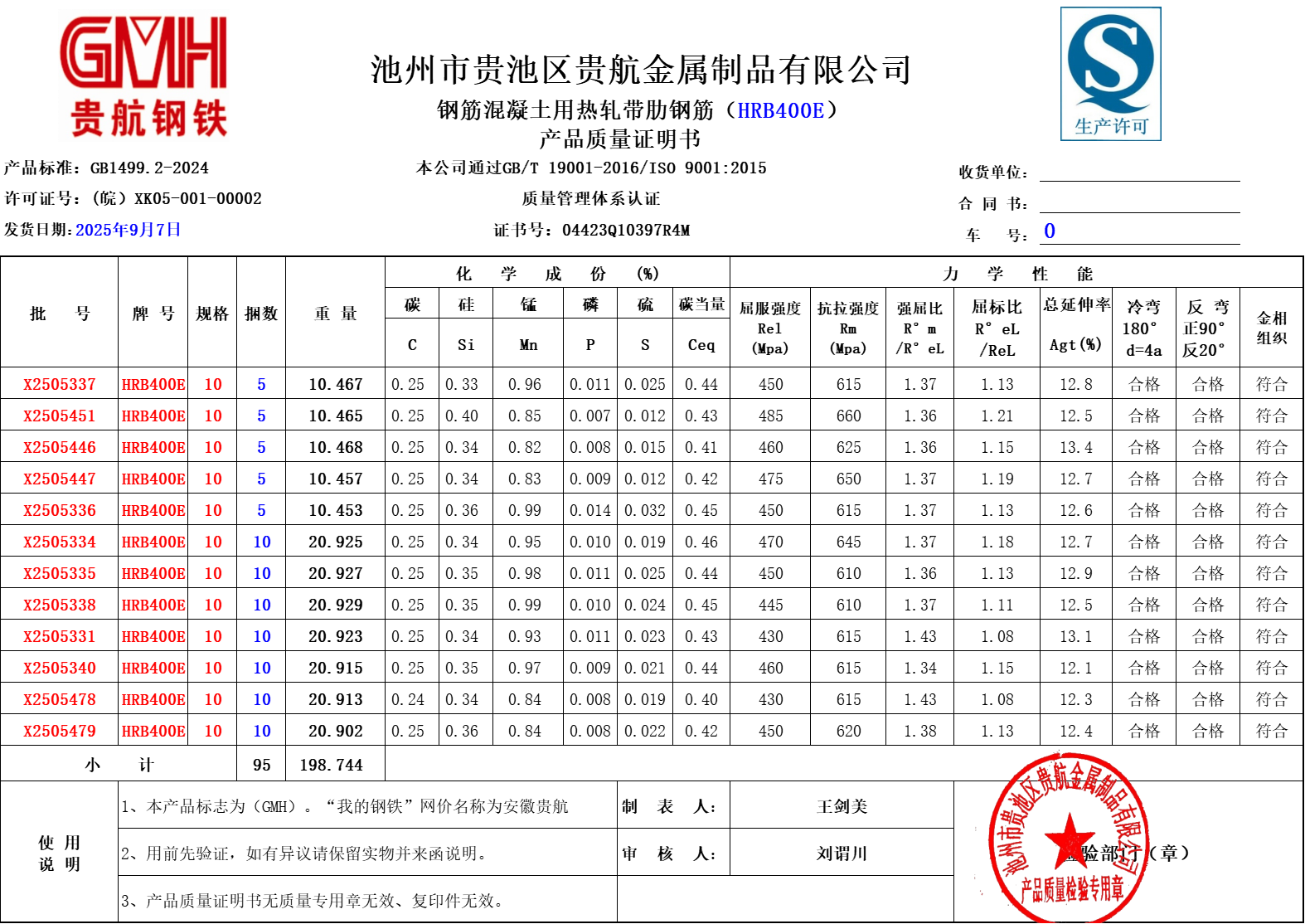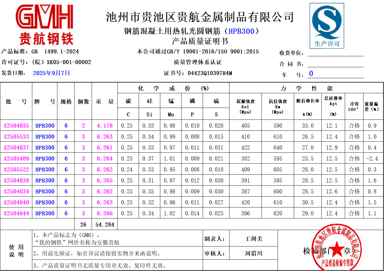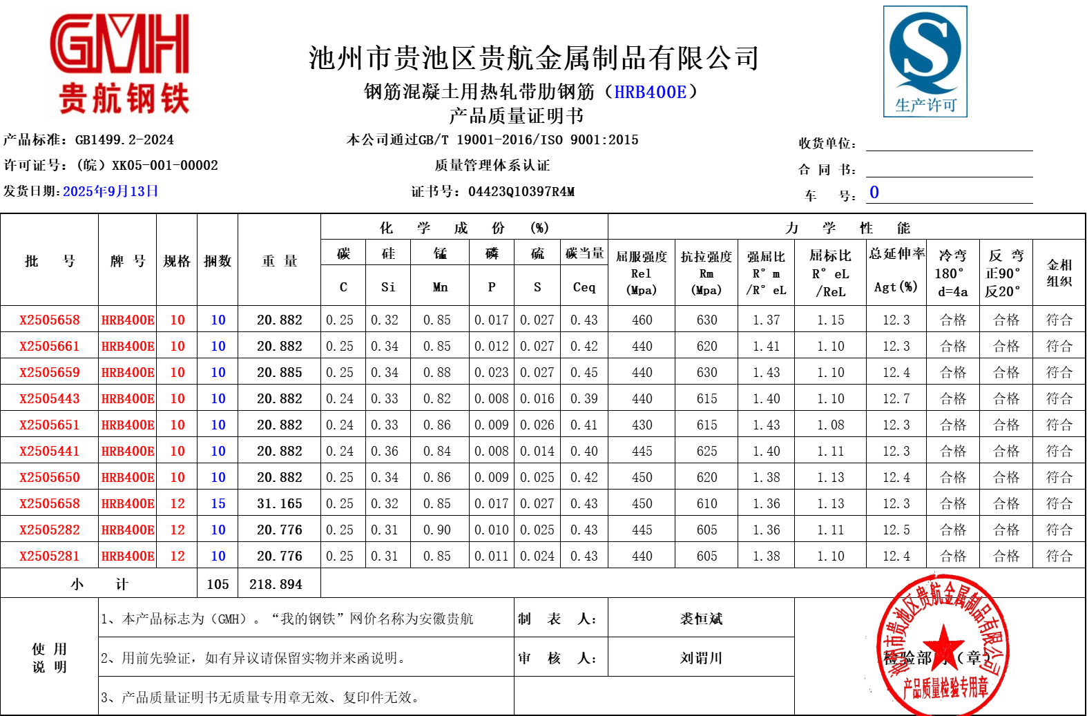 池州市贵池区贵航金属制品有限公司本公司通过GB/T19001-2016/ISO9001:2015