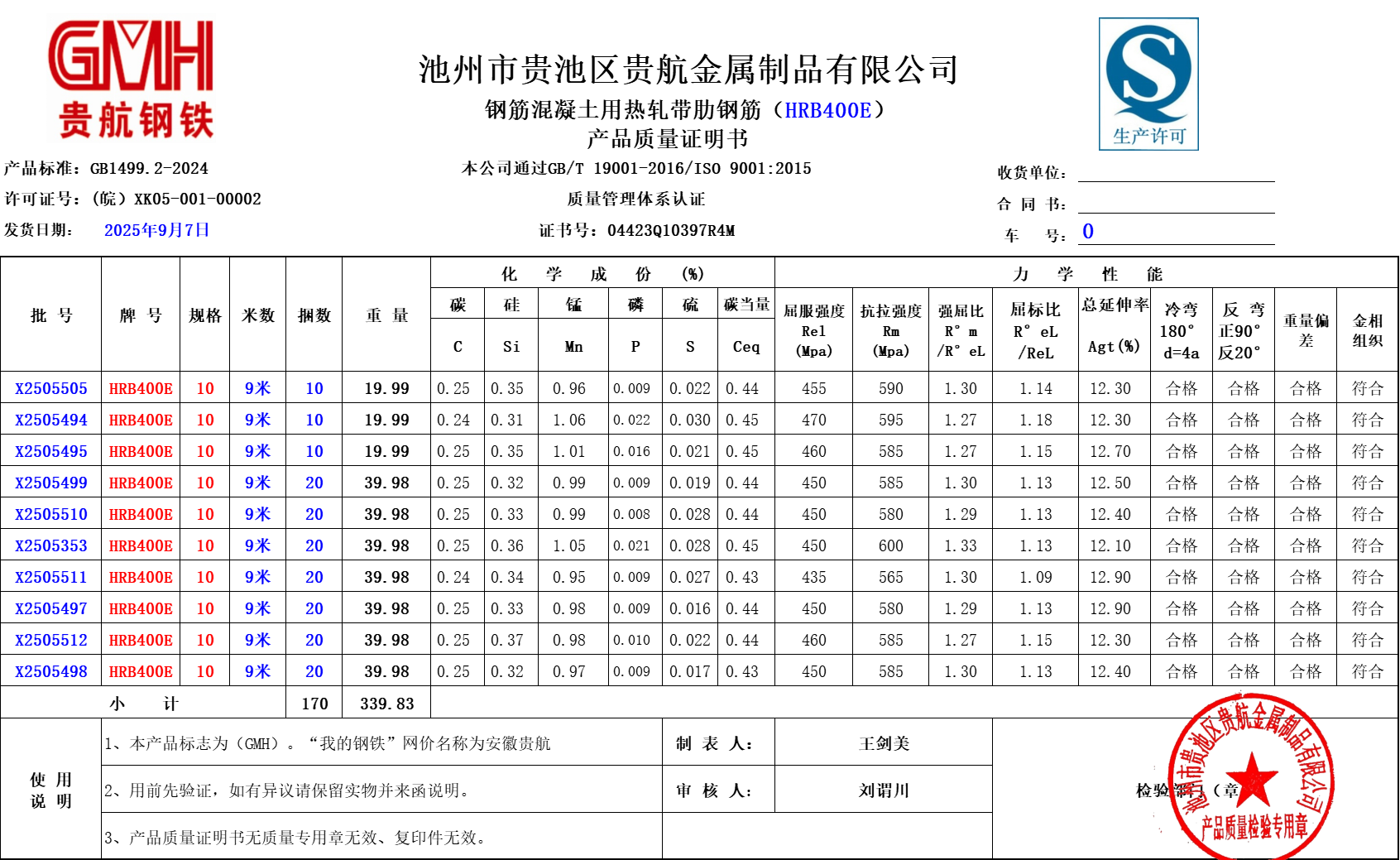 池州市贵池区贵航金属制品有限公司本公司通过GB/T19001-2016/IS09001:2015