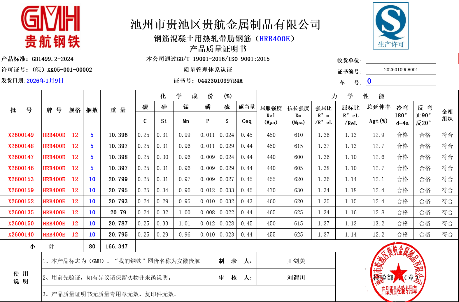 安徽省贵航特钢有限公司GH/JL-JZ-45提货单位:上海世亚电子商务有限公司3、如发现产品质量问题,请在验收后5天内向我公司质量科提出异议并保留实物,等我公司审验后处理,擅自使用我公司不负任何责任。