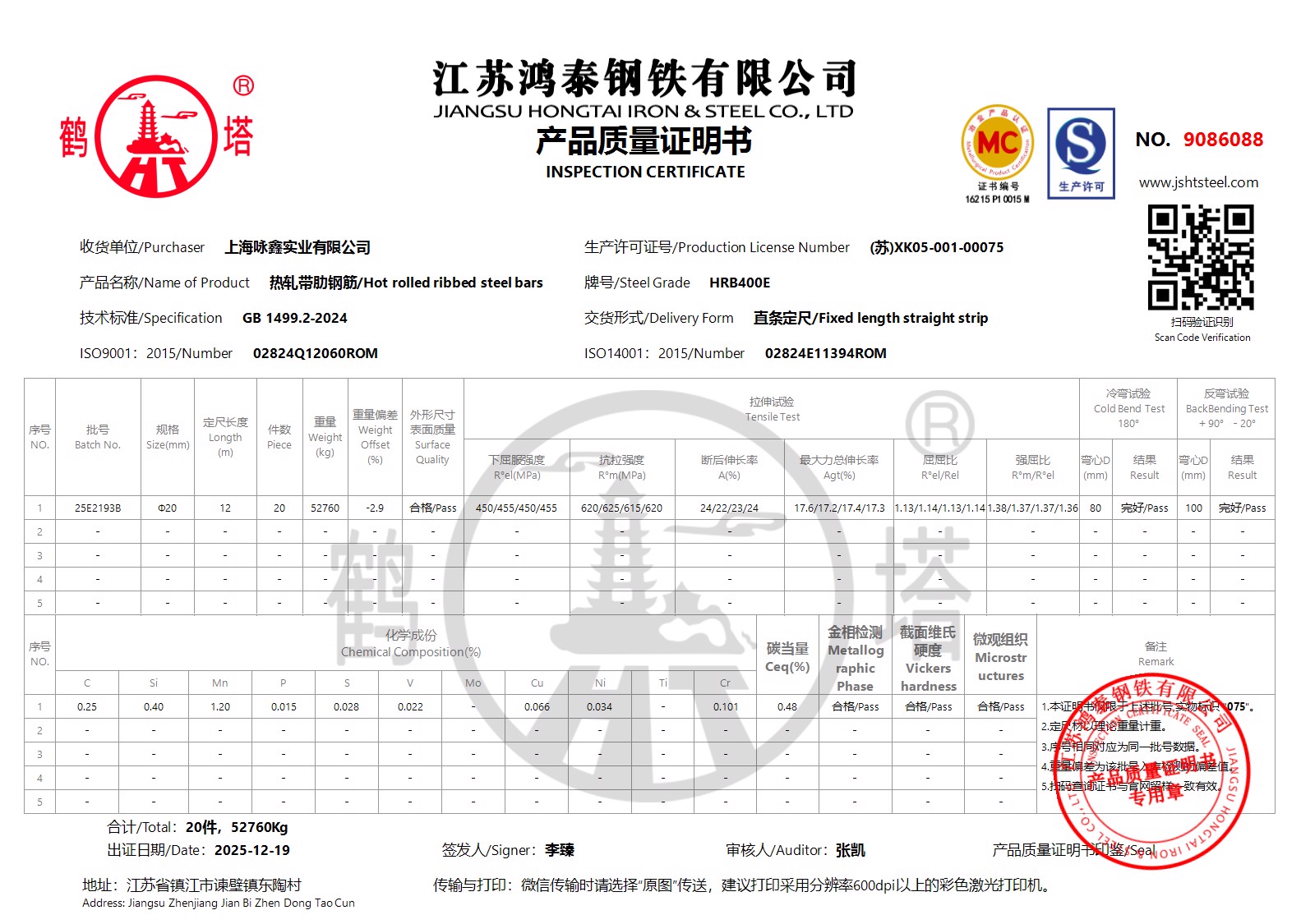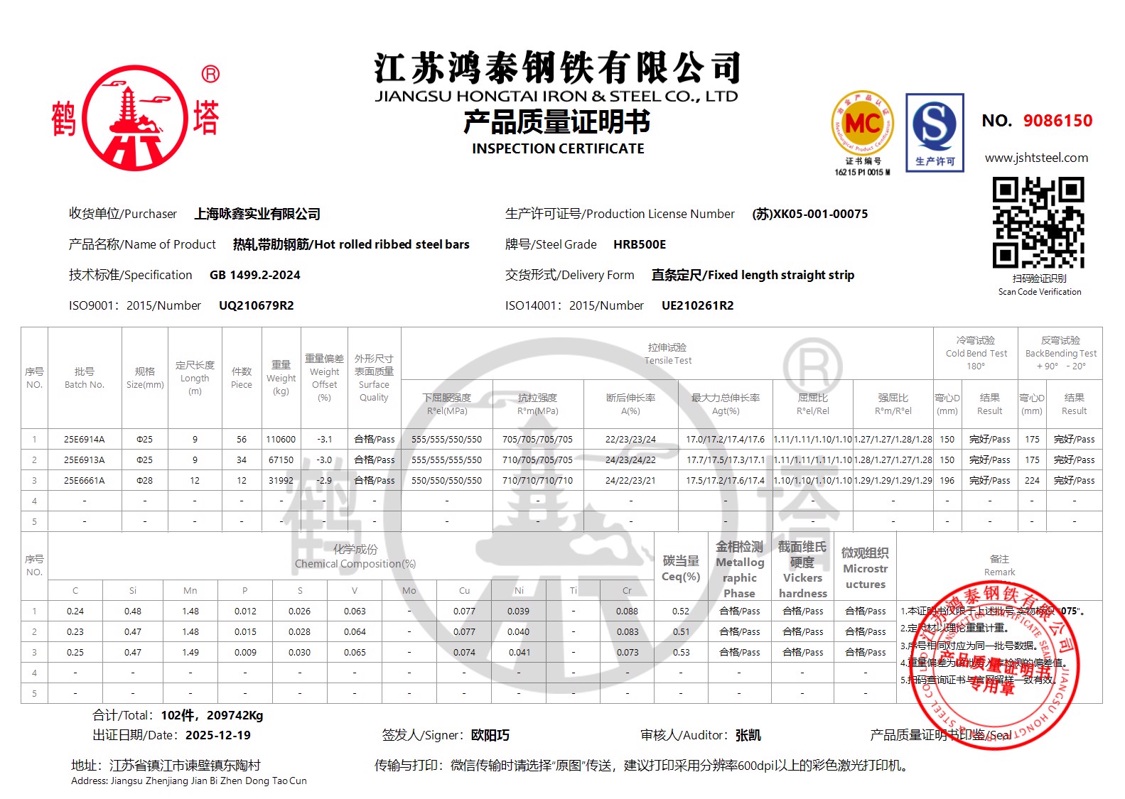 江苏鸿泰钢铁有限公司9086088上海咏鑫实业有限公司
