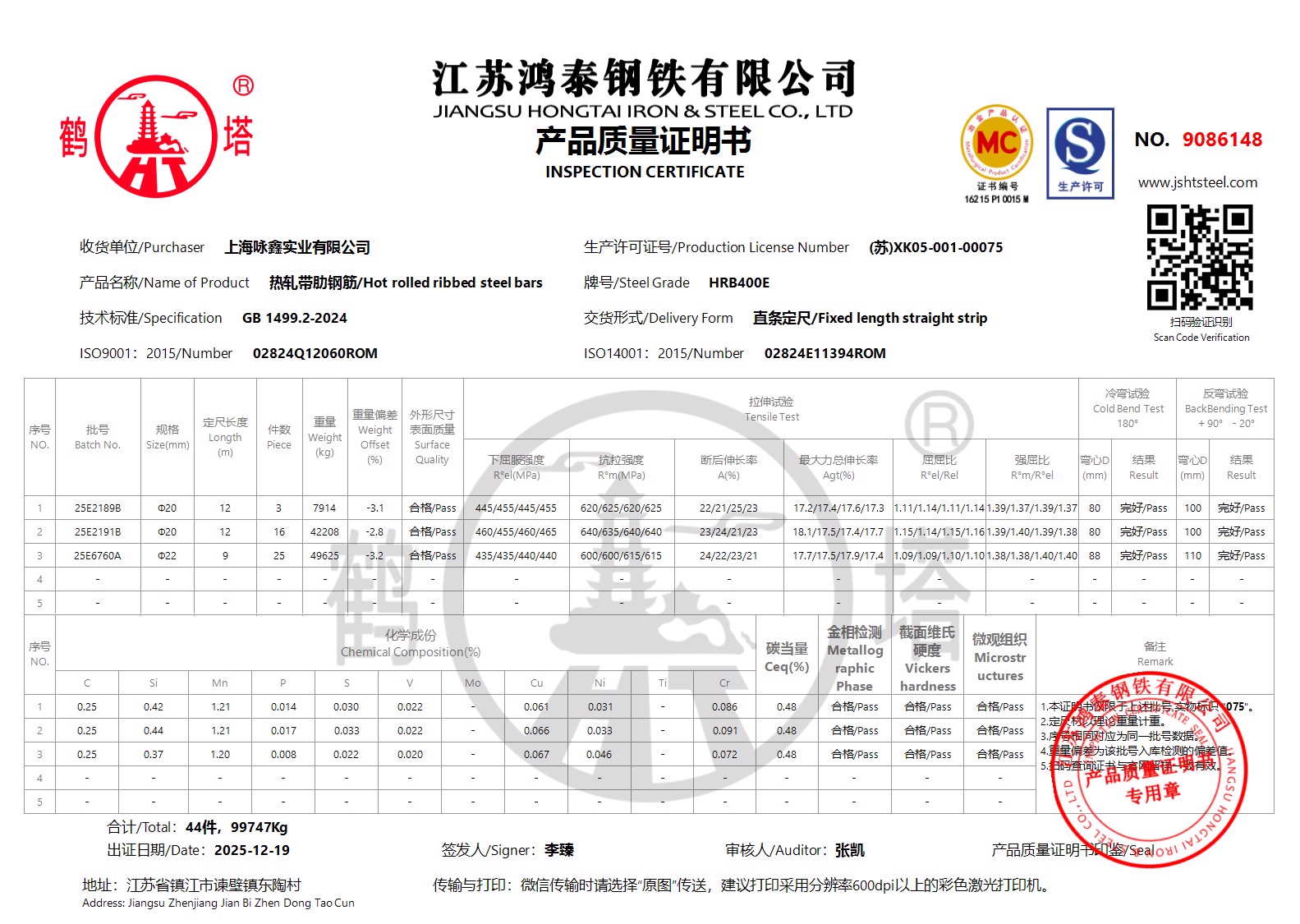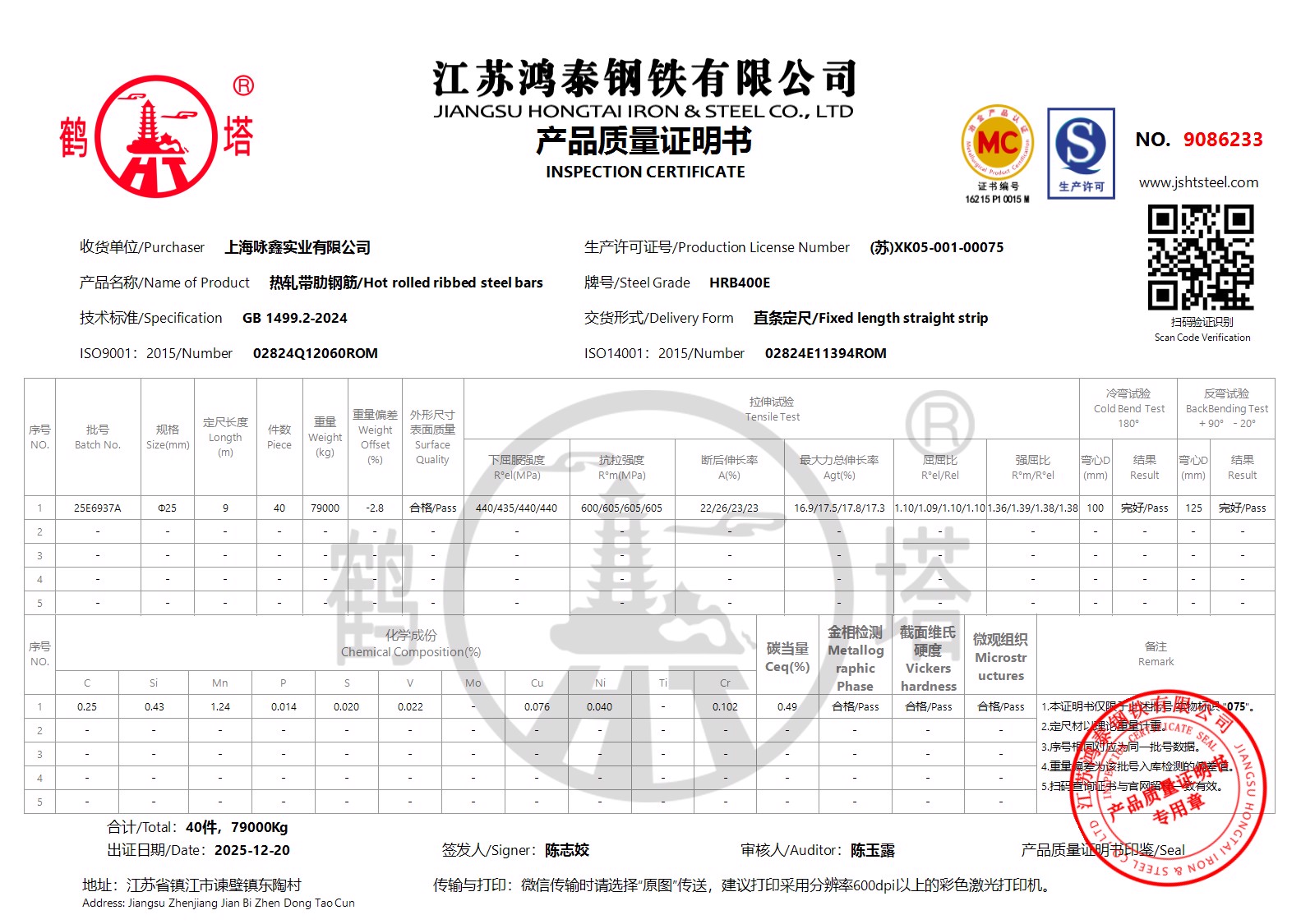 江苏鸿泰钢铁有限公司9086148上海咏鑫实业有限公司