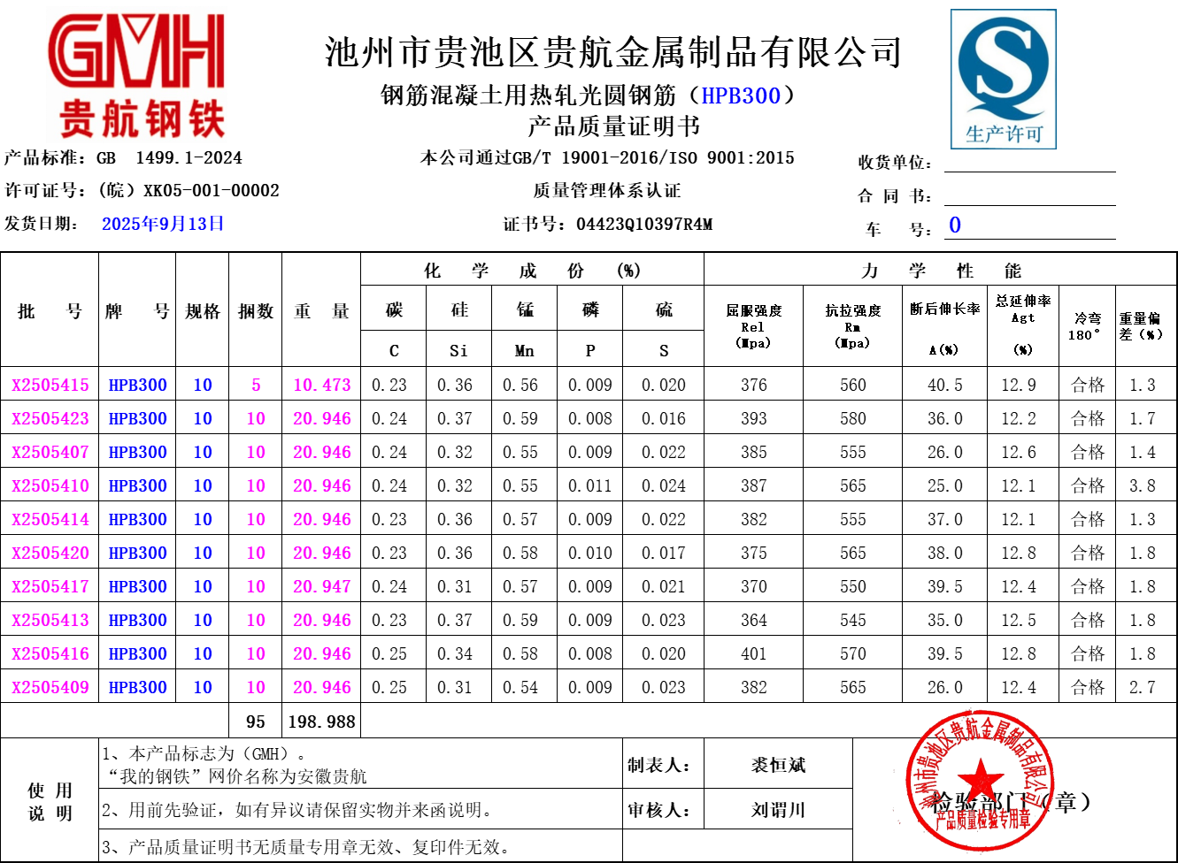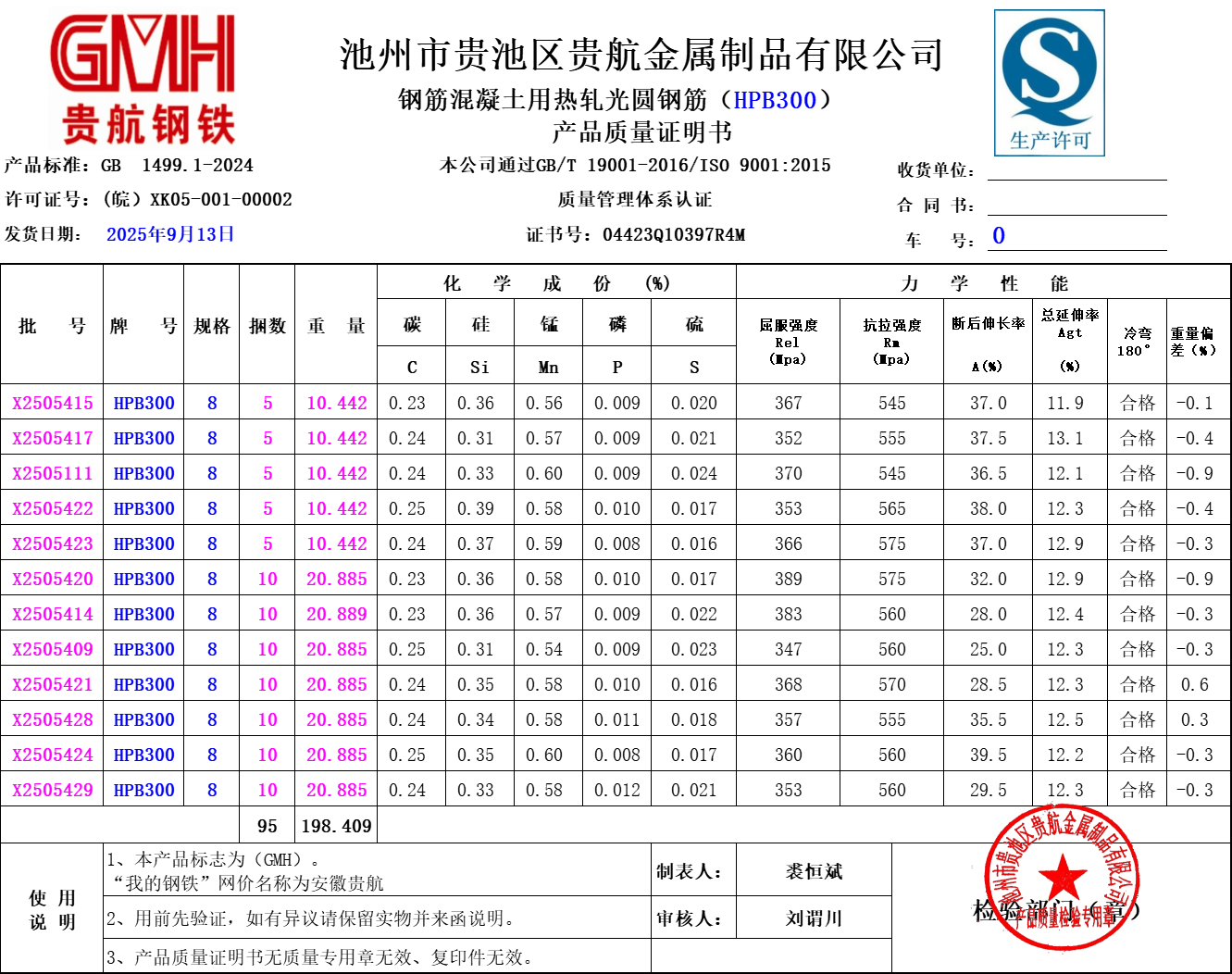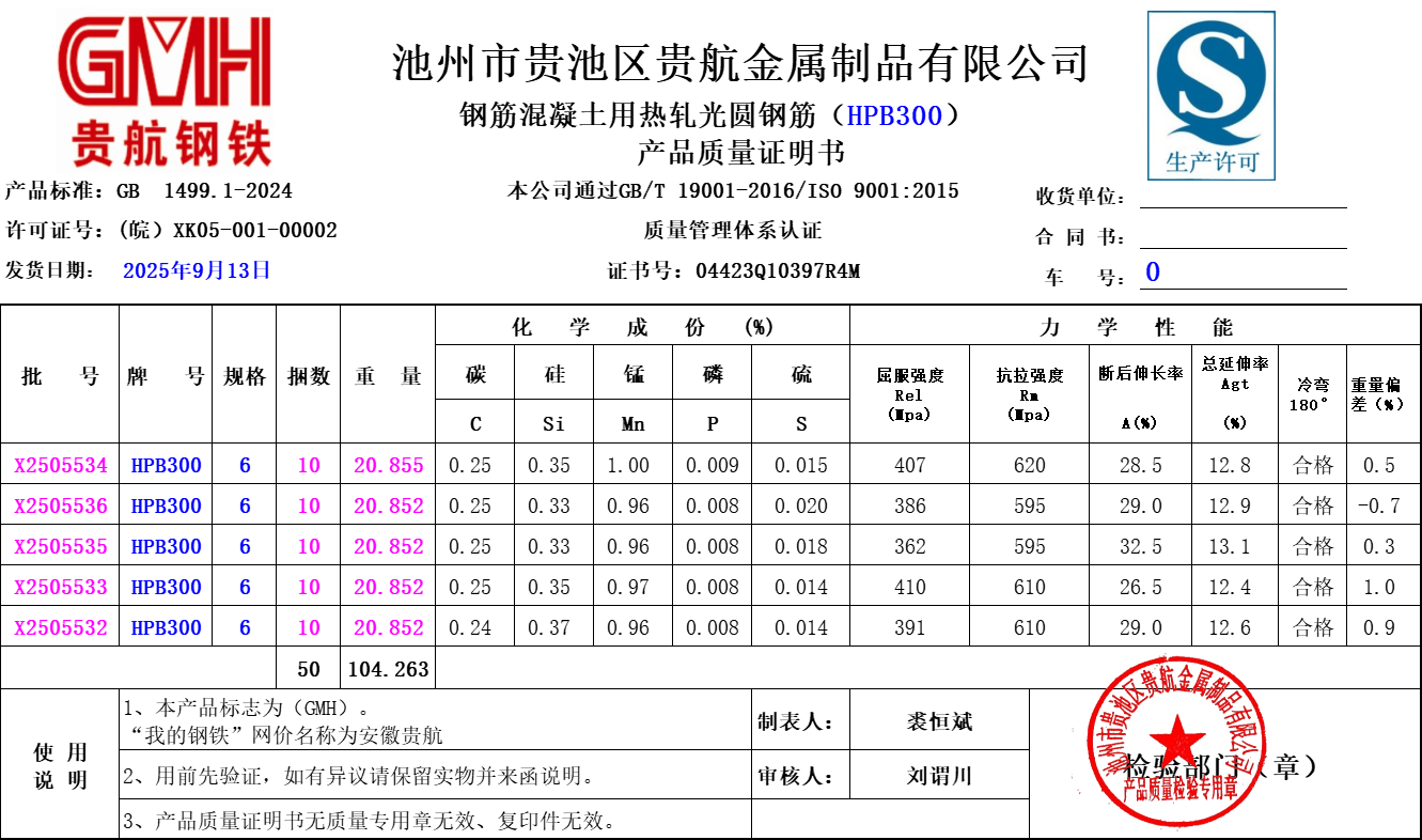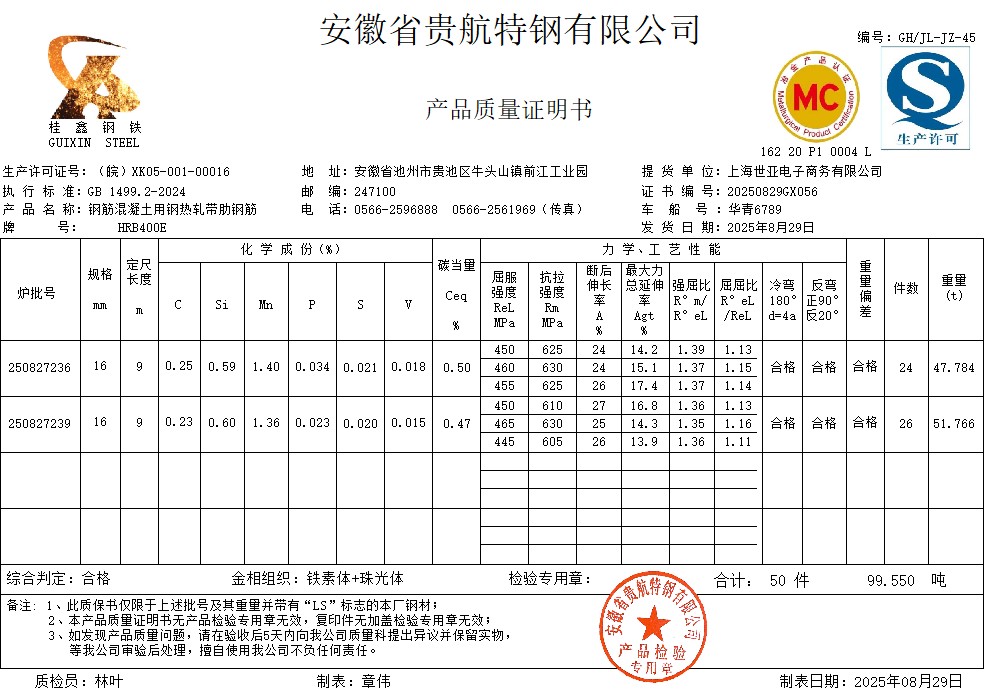 安徽省贵航特钢有限公司GH/JL-JZ-45提货单位:上海世亚电子商务有限公司3、如发现产品质量问题,请在验收后5天内向我公司质量科提出异议并保留实物,等我公司审验后处理,擅自使用我公司不负任何责任。