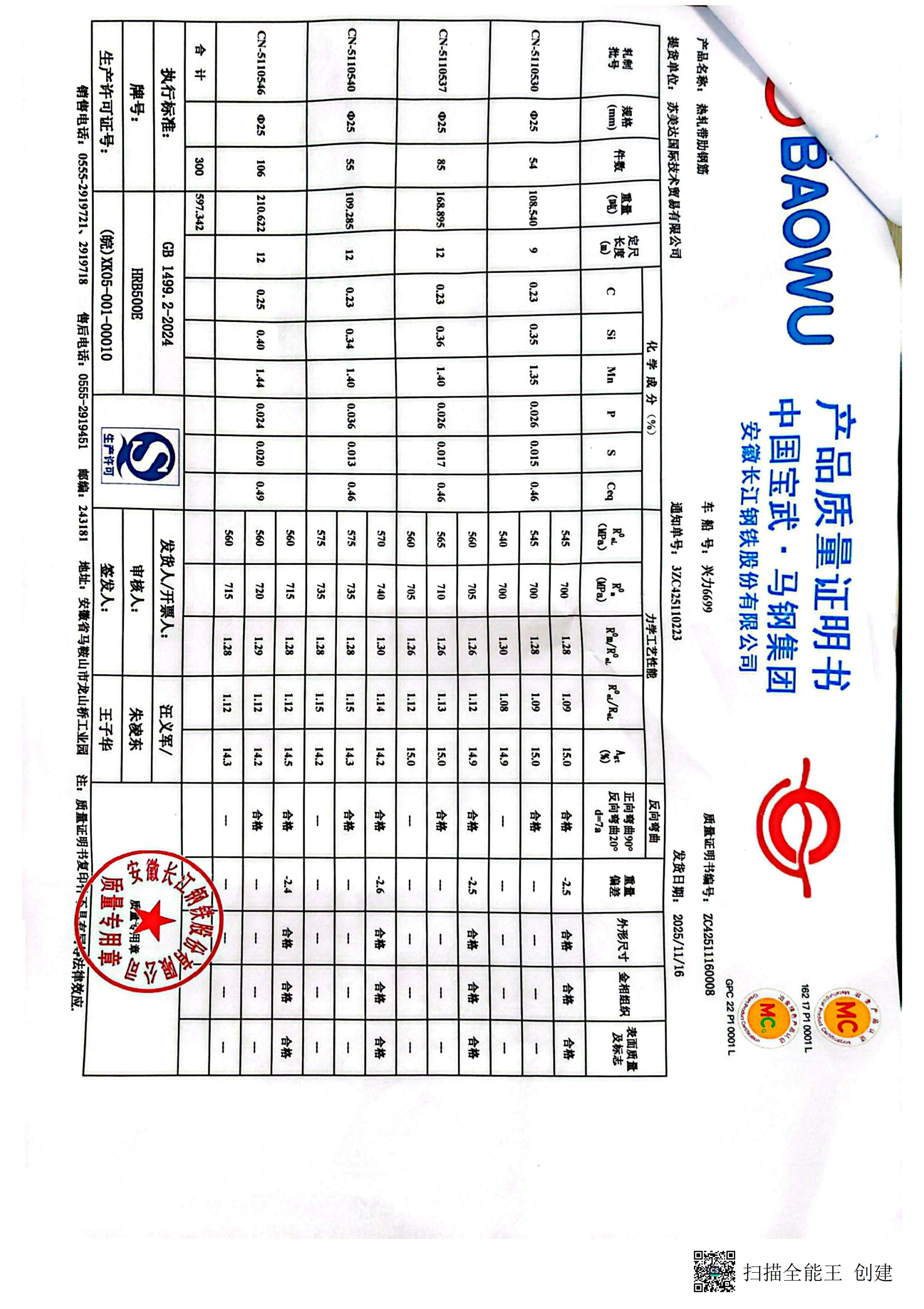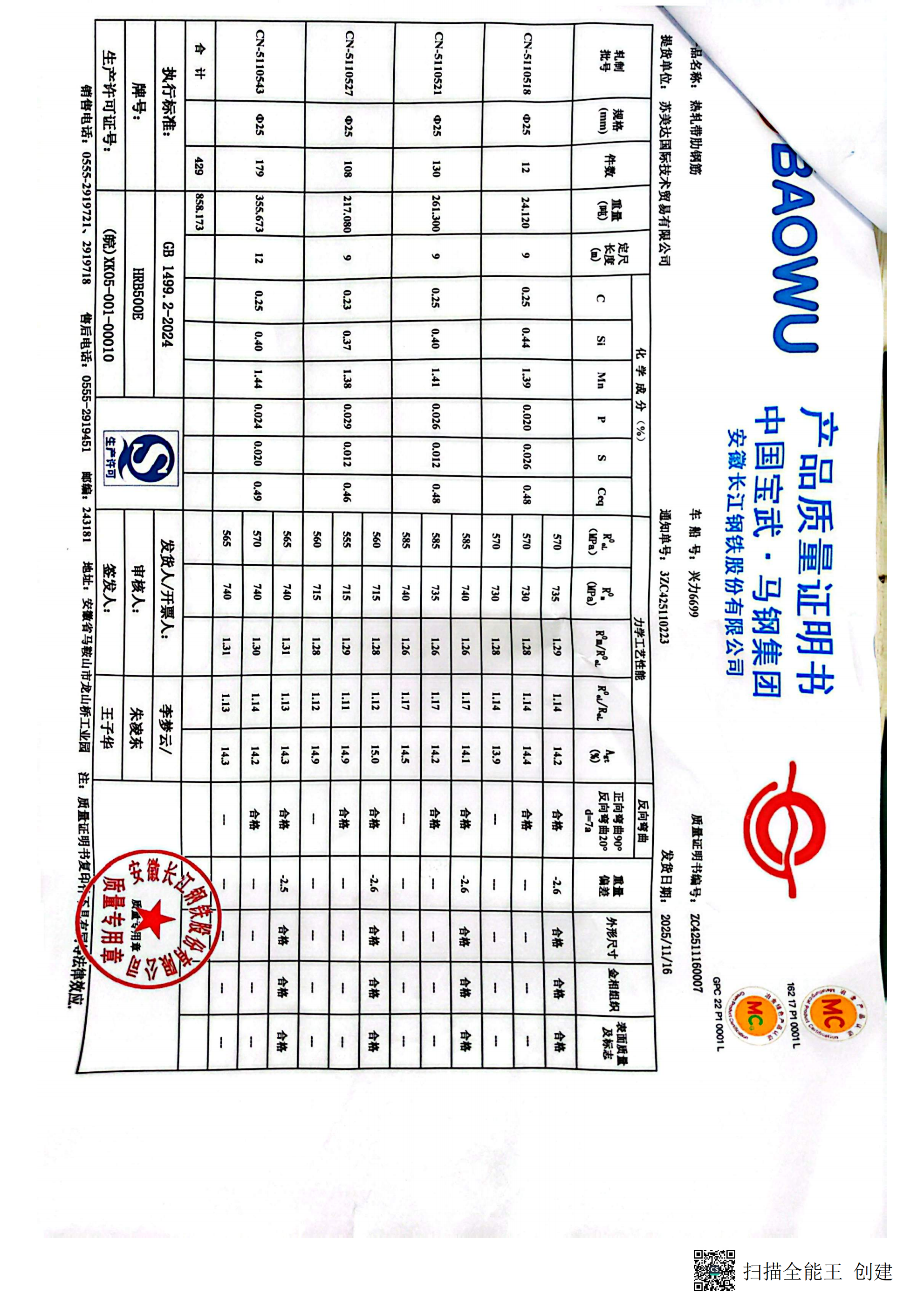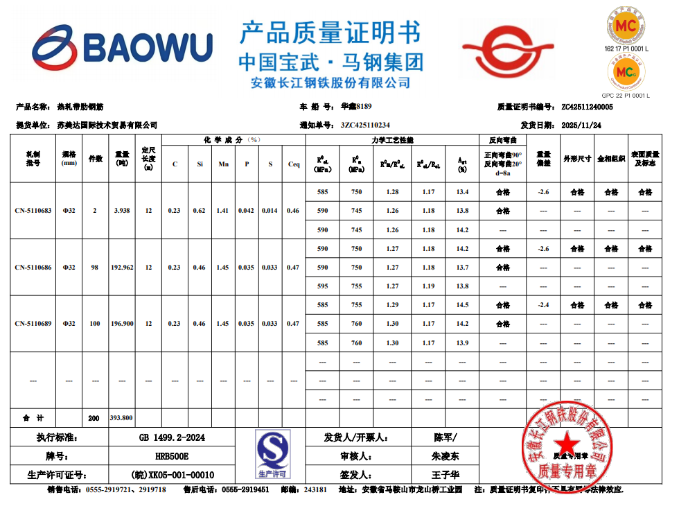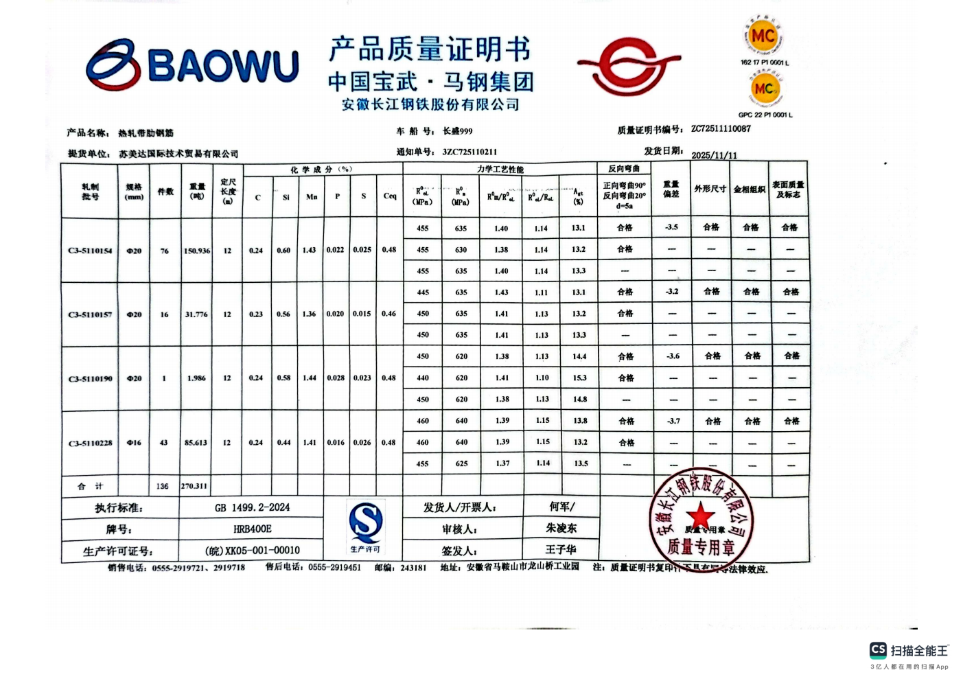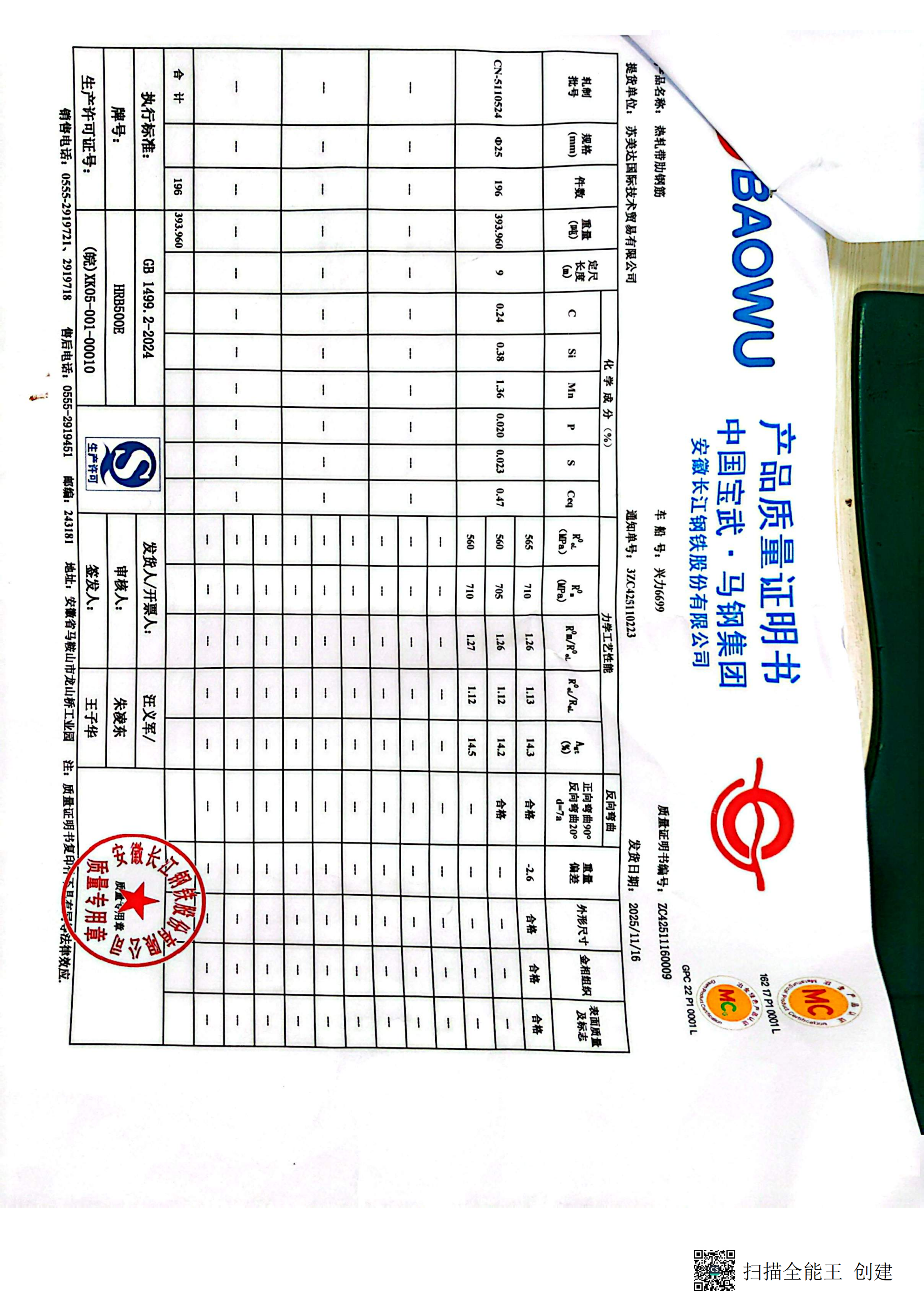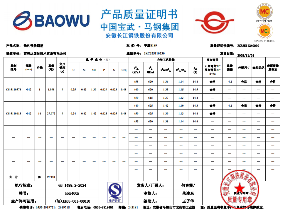 安徽长江钢铁股份有限公司提货单位:苏美达国际技术贸易有限公司