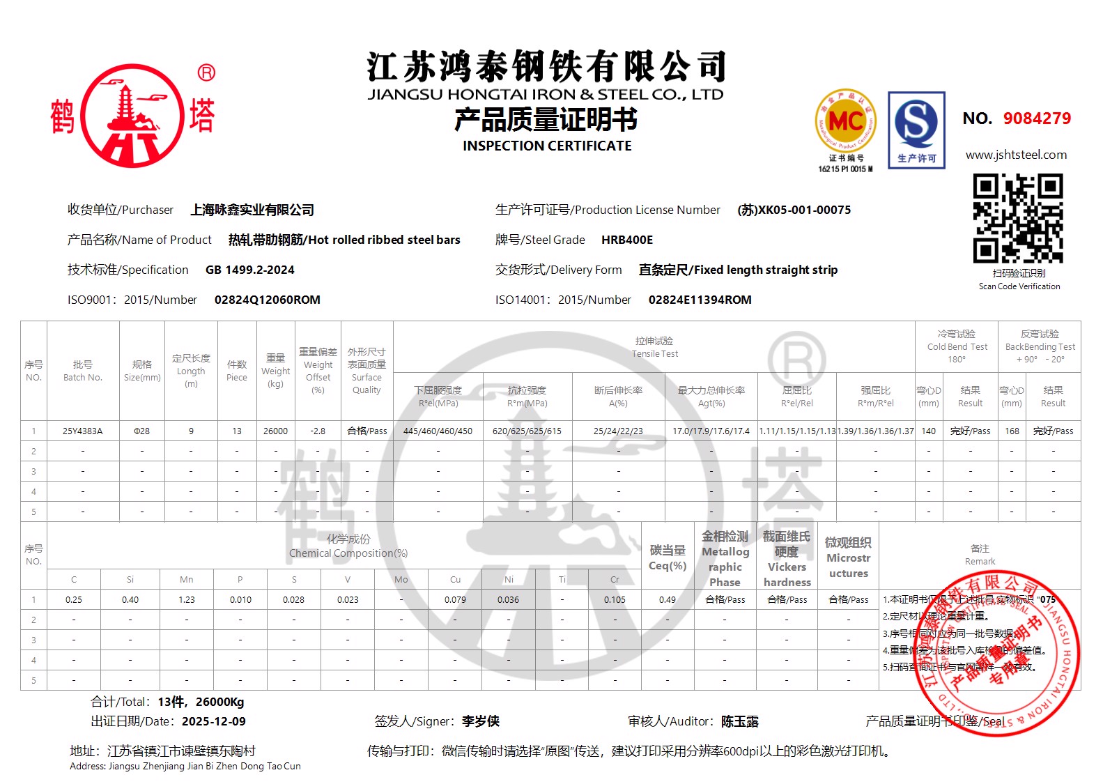江苏鸿泰钢铁有限公司9084864上海咏鑫实业有限公司