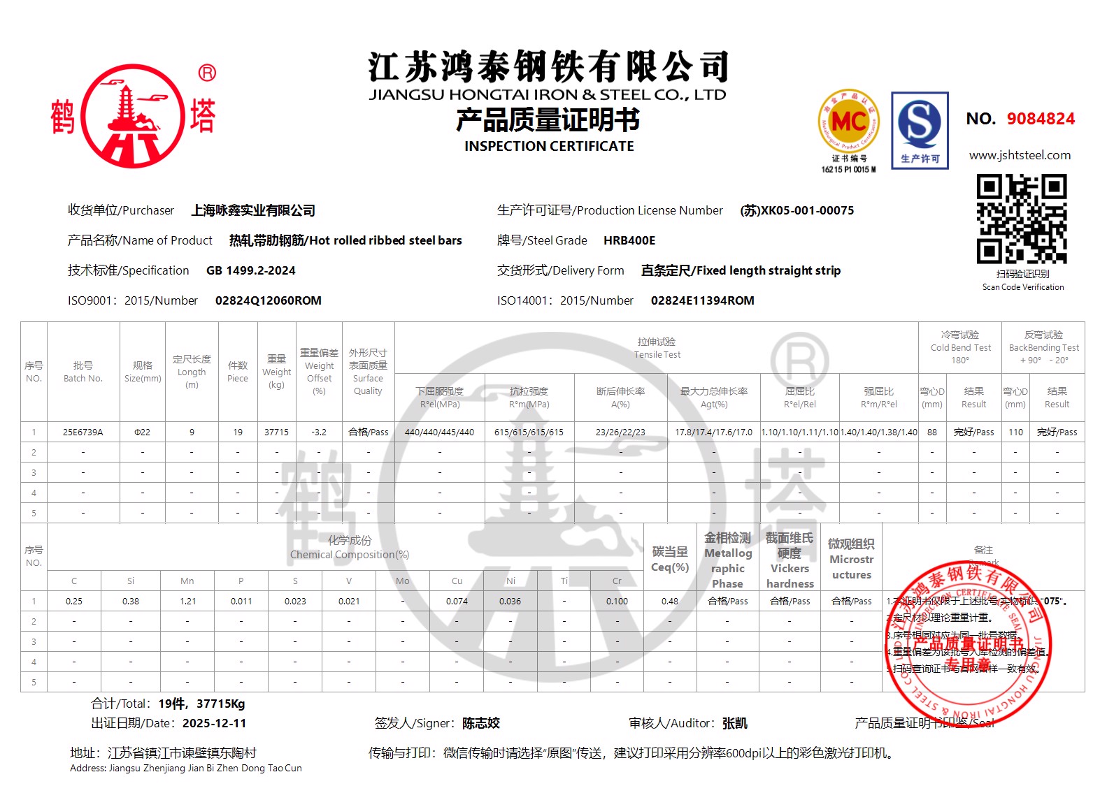 江苏鸿泰钢铁有限公司9084865上海咏鑫实业有限公司NO8IIVD